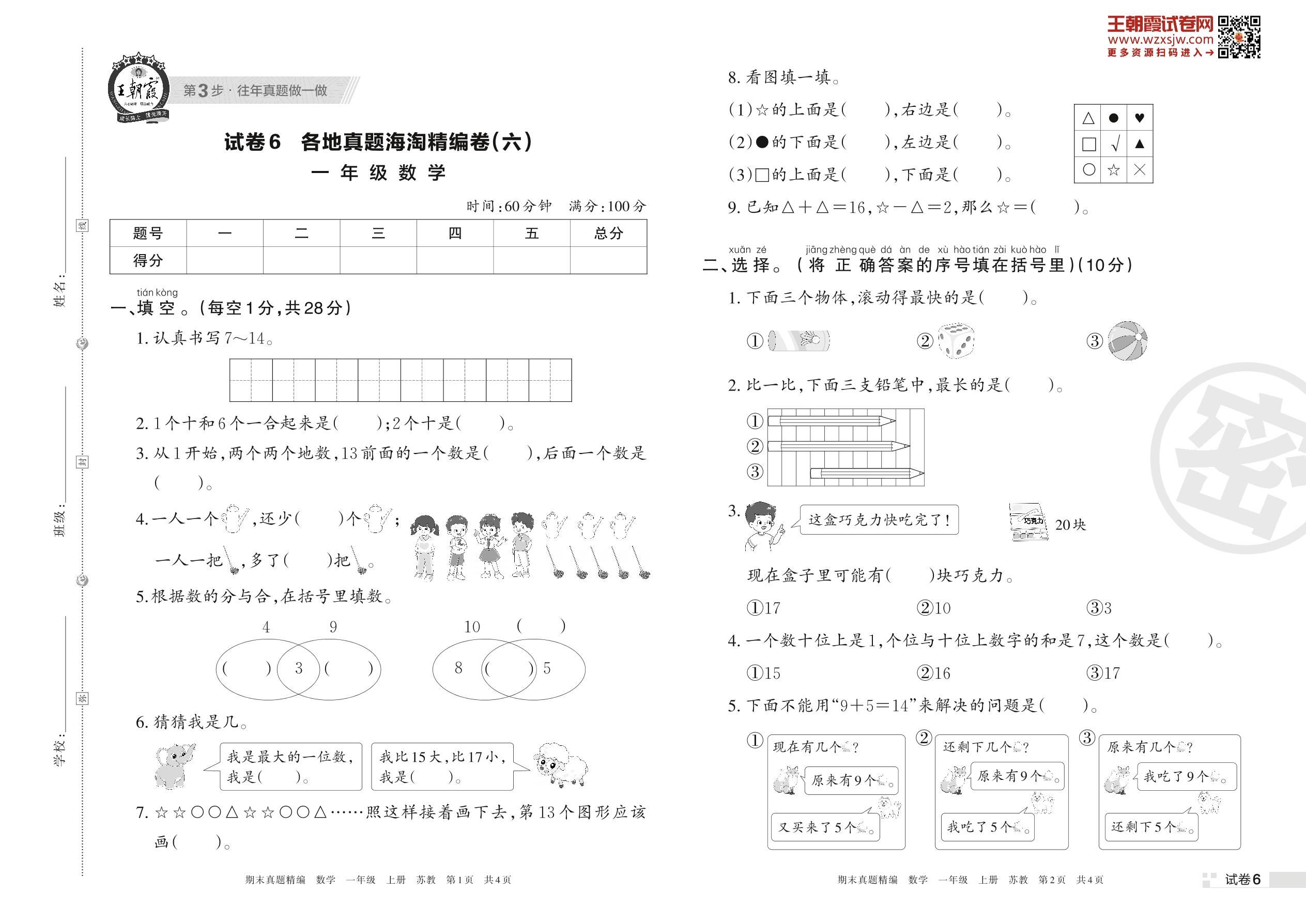 各地真题海淘精编卷(六)一年级上册数学(苏教版)_R221128163154212【6】