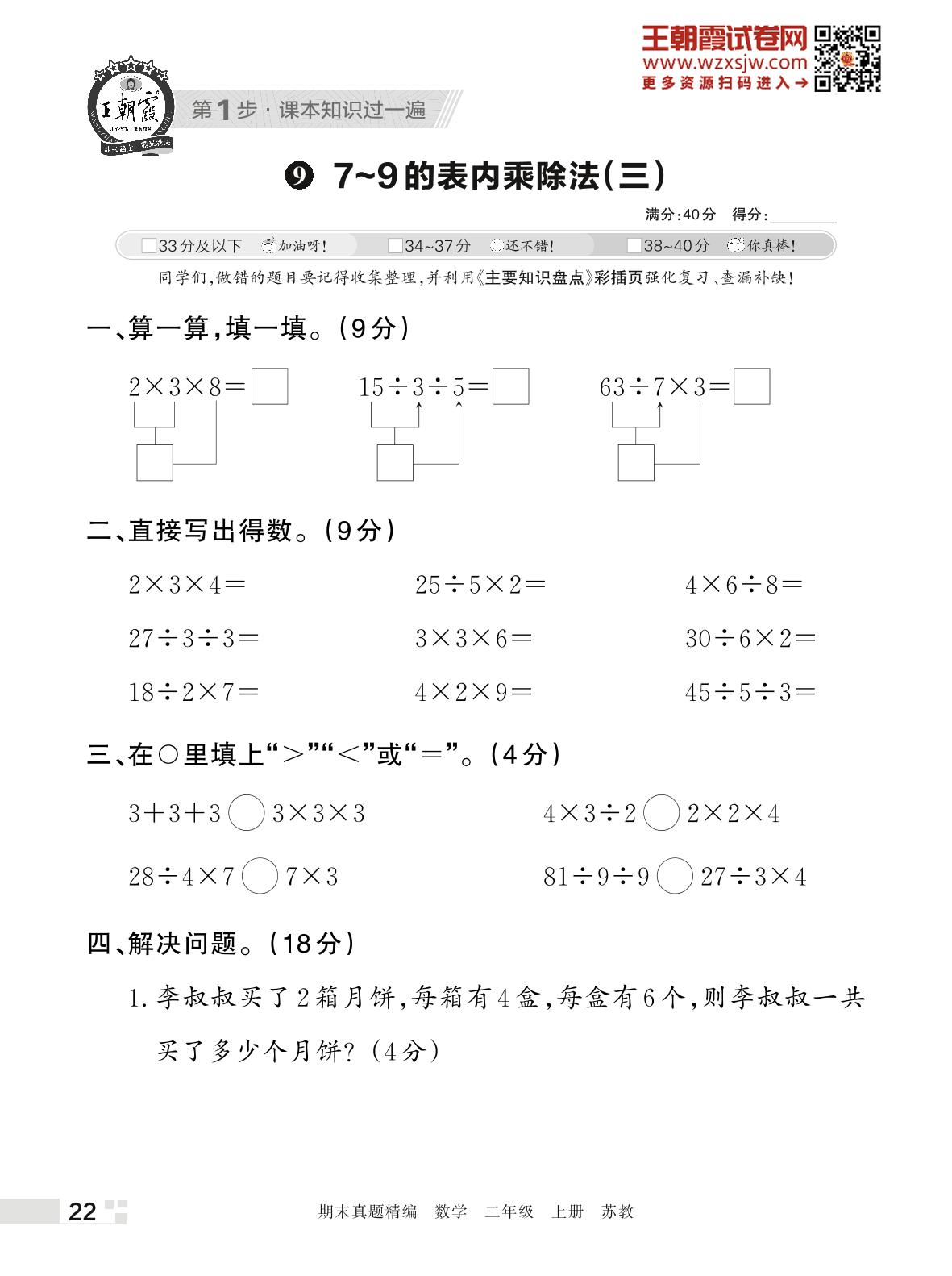 王朝霞期末过课本——9 7~9的表内乘除法(三)二年级上册数学(苏教版)_R221128163903613