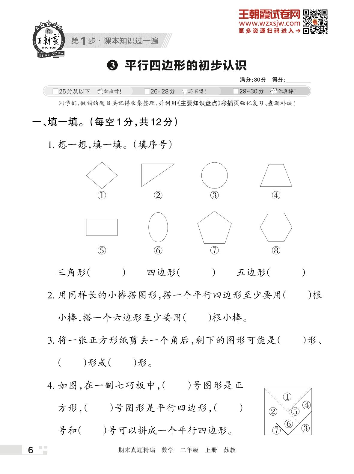 王朝霞期末过课本——3 平行四边形的初步认识二年级上册数学(苏教版)_R221128163903889