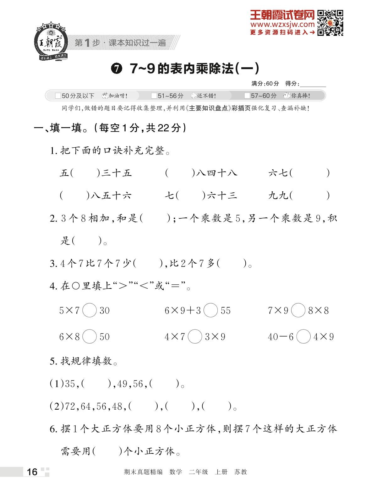 王朝霞期末过课本——7 7~9的表内乘除法(一)二年级上册数学(苏教版)_R221128163903461