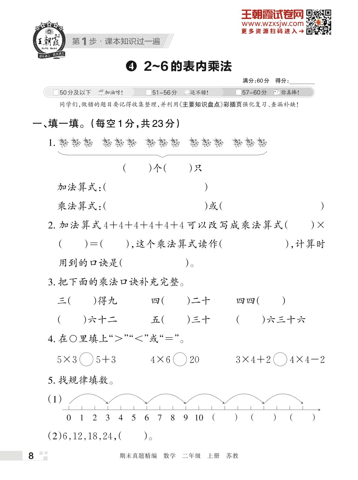 王朝霞期末过课本——4 2~6的表内乘法二年级上册数学(苏教版)_R221128163903785