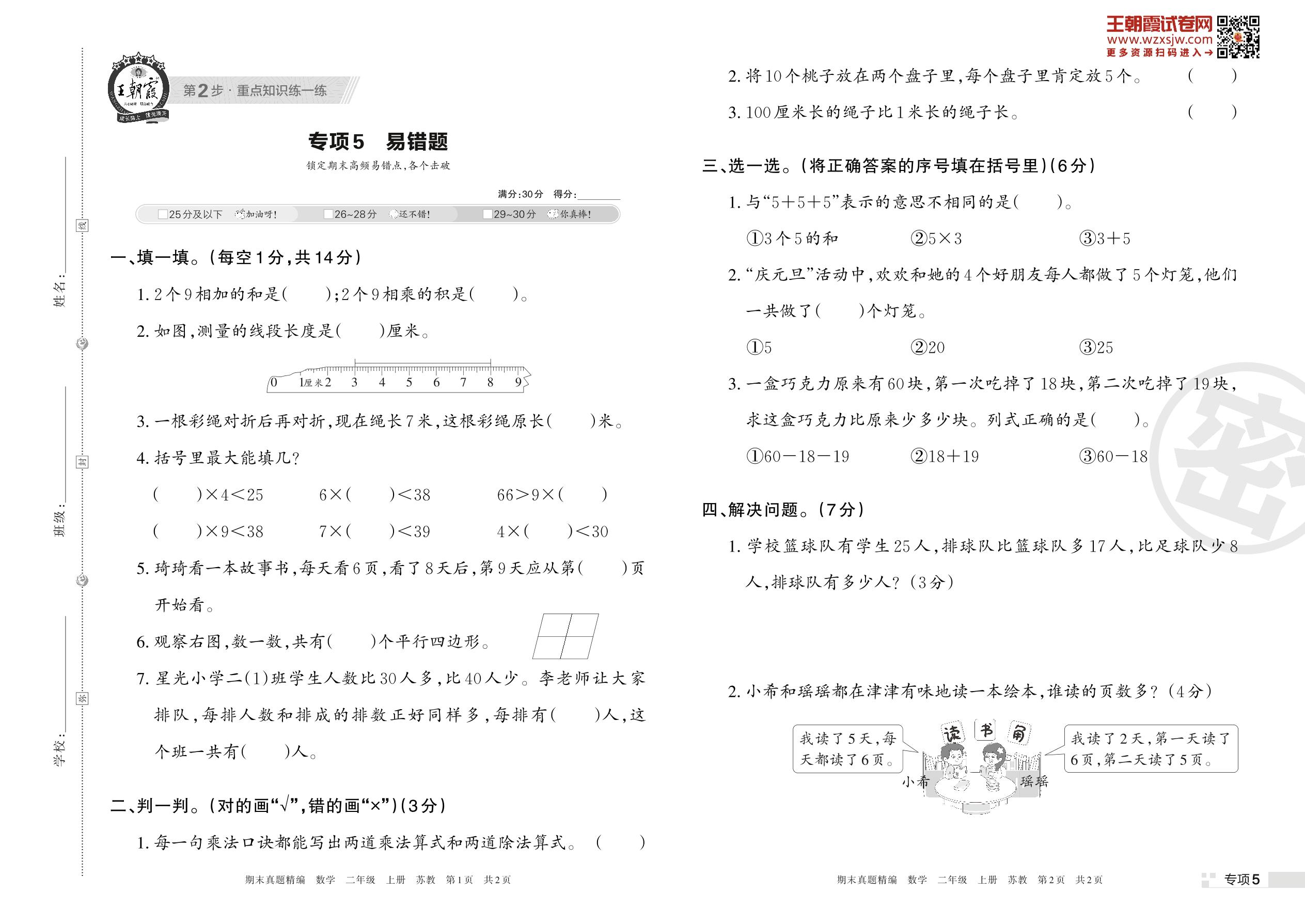 王朝霞期末专项卷——易错题二年级上册数学(苏教版)_R221128163904752【5】