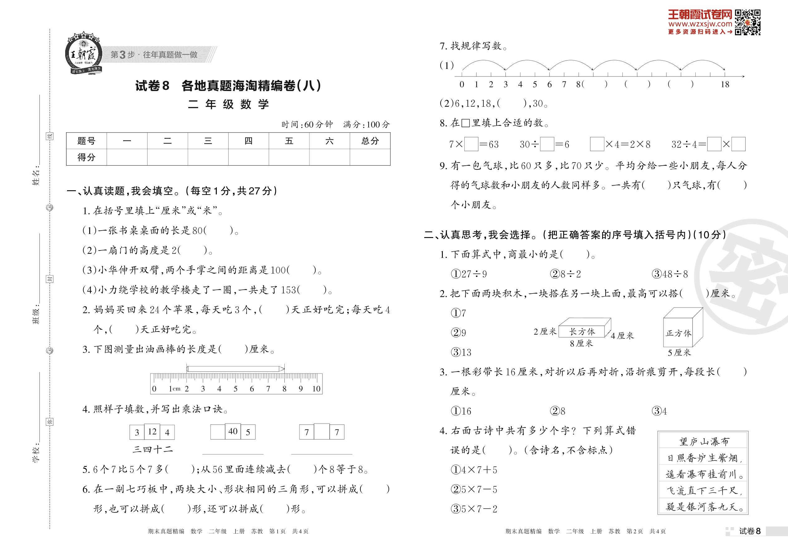 各地真题海淘精编卷(八)二年级上册数学(苏教版)_R221128163905560【8】