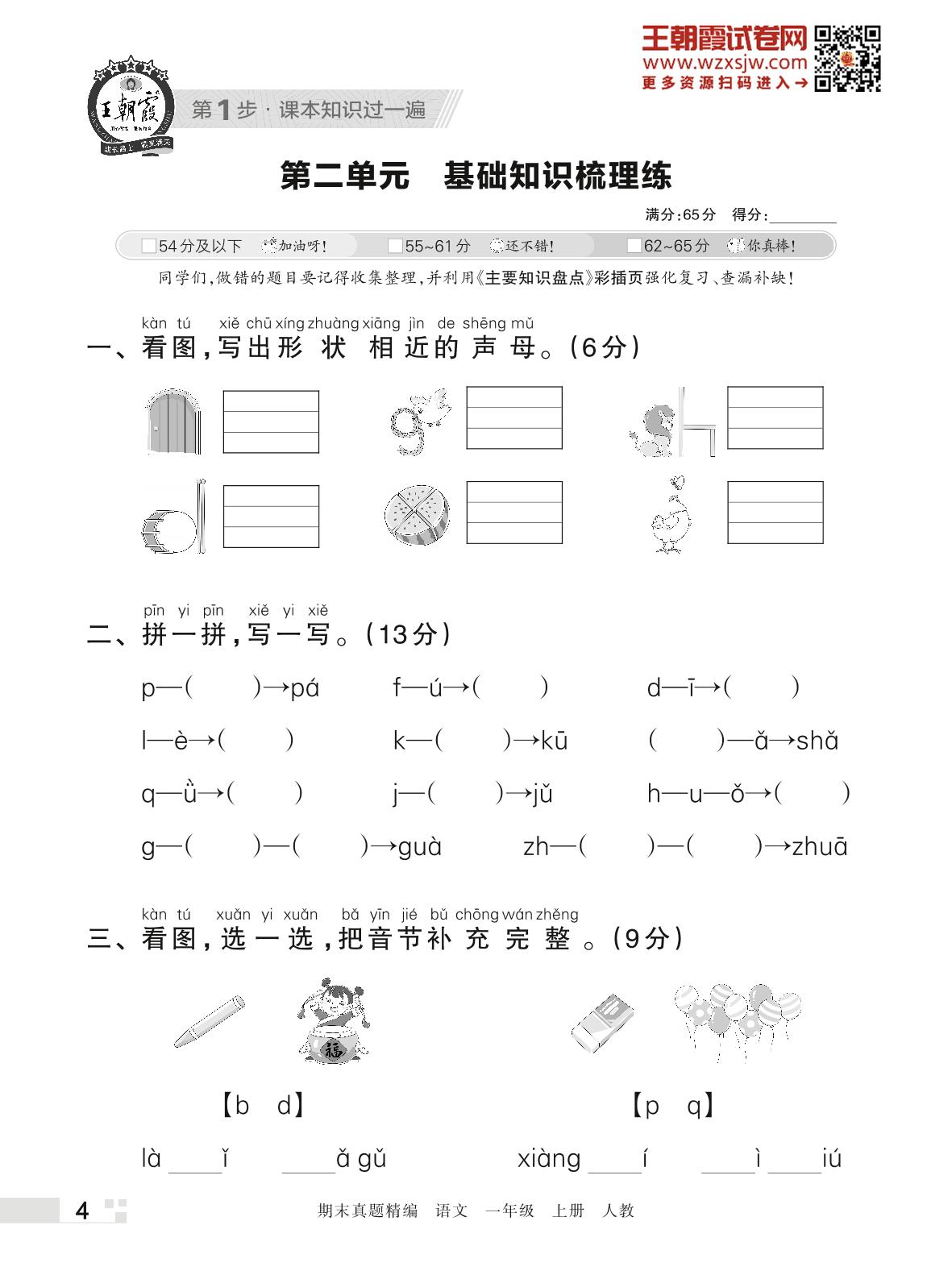王朝霞期末过课本——第二单元 基础知识梳理练一年级上册语文(人教版)_R221128164654246