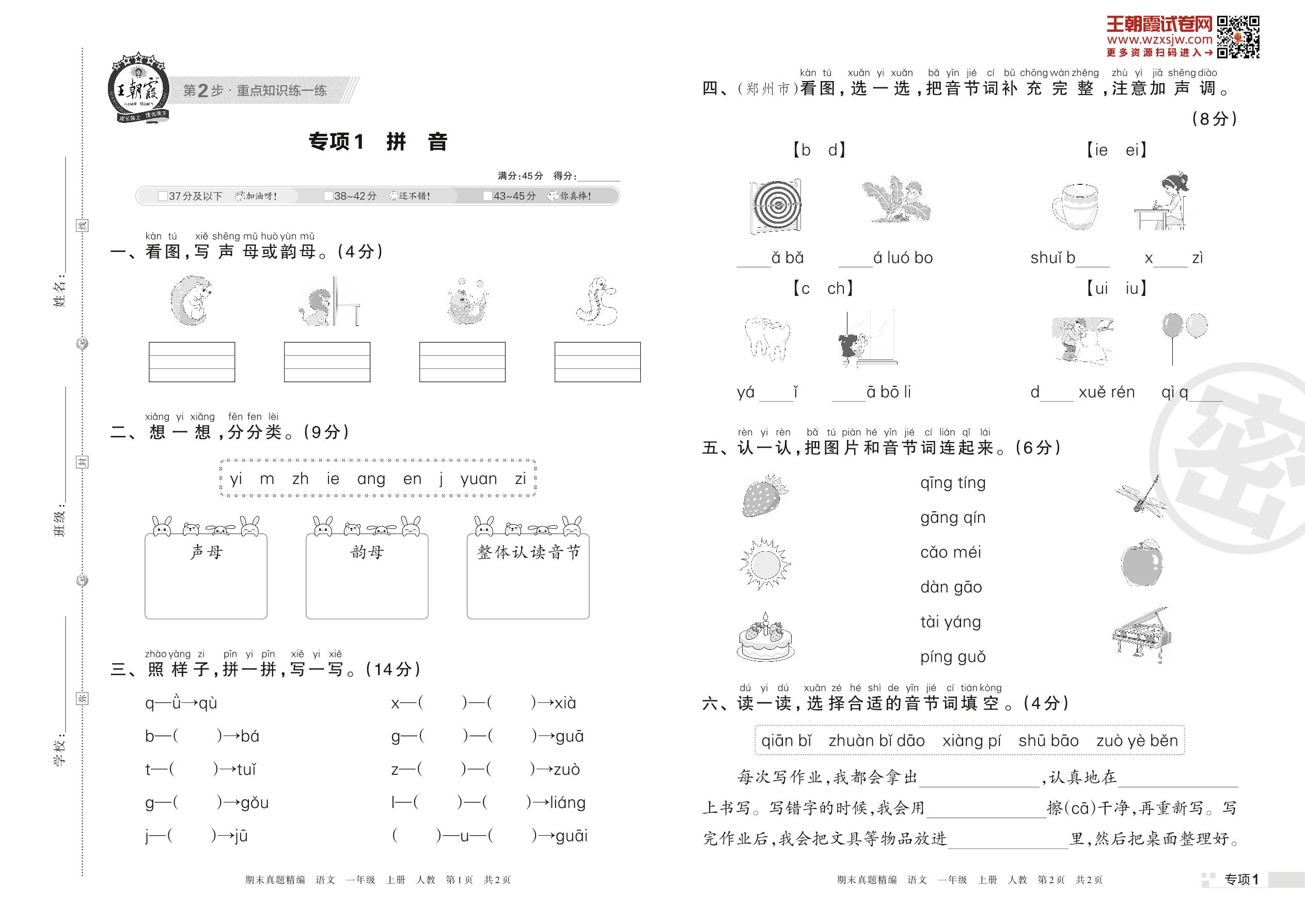 王朝霞期末专项卷——拼音一年级上册语文(人教版)_R221128164655940【1】