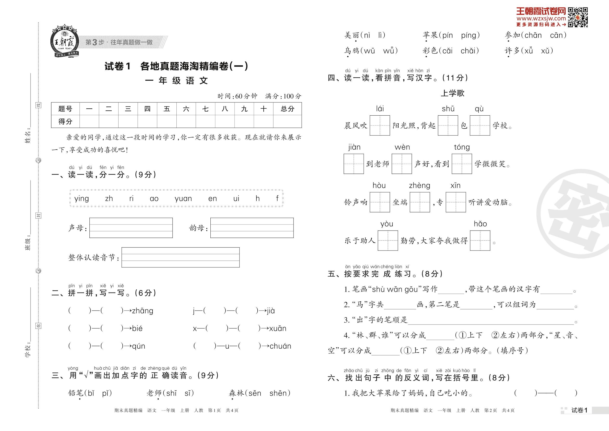 各地真题海淘精编卷(一)一年级上册语文(人教版)_R221128164656033【1】