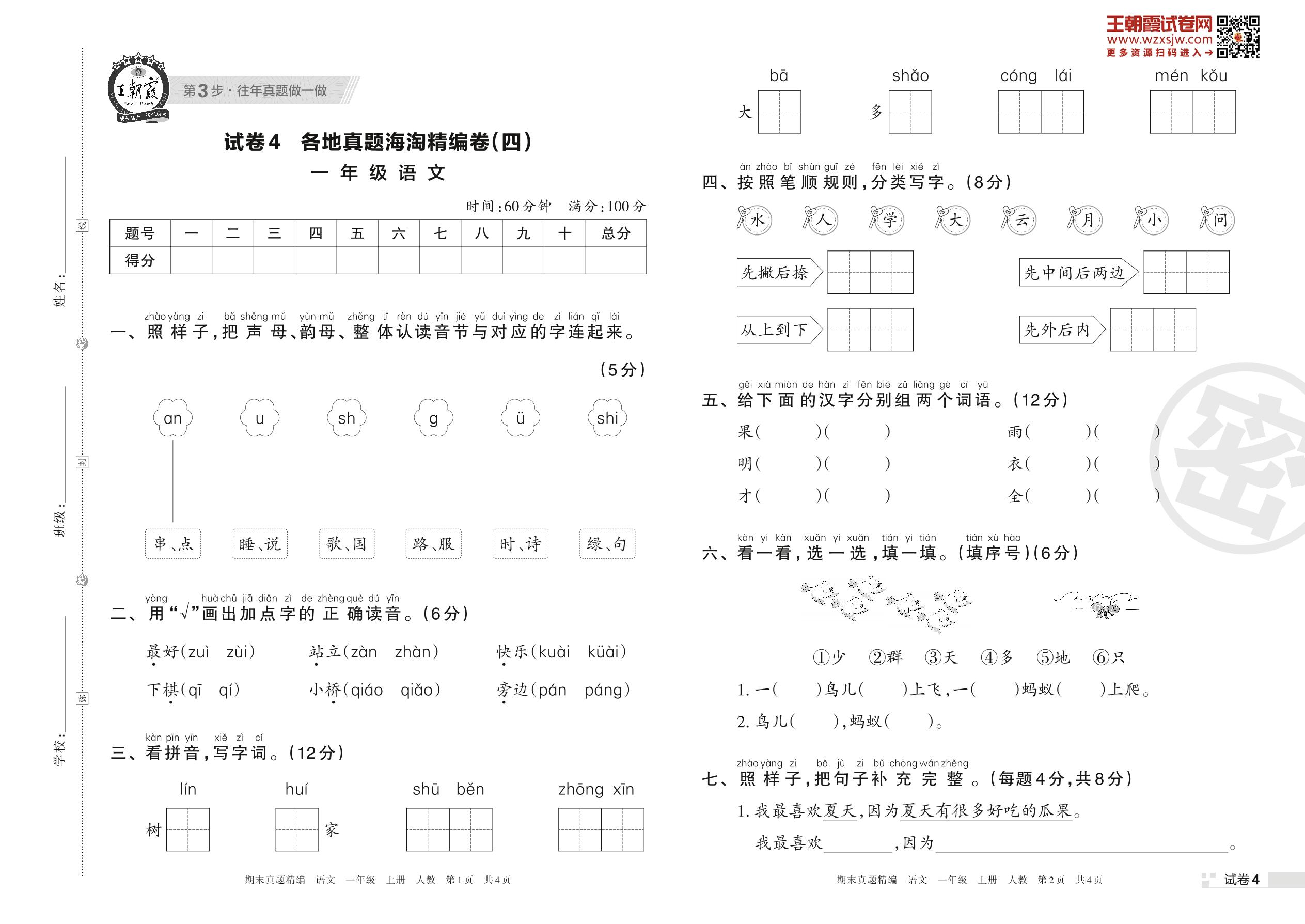 各地真题海淘精编卷(四)一年级上册语文(人教版)_R221128164656156【4】