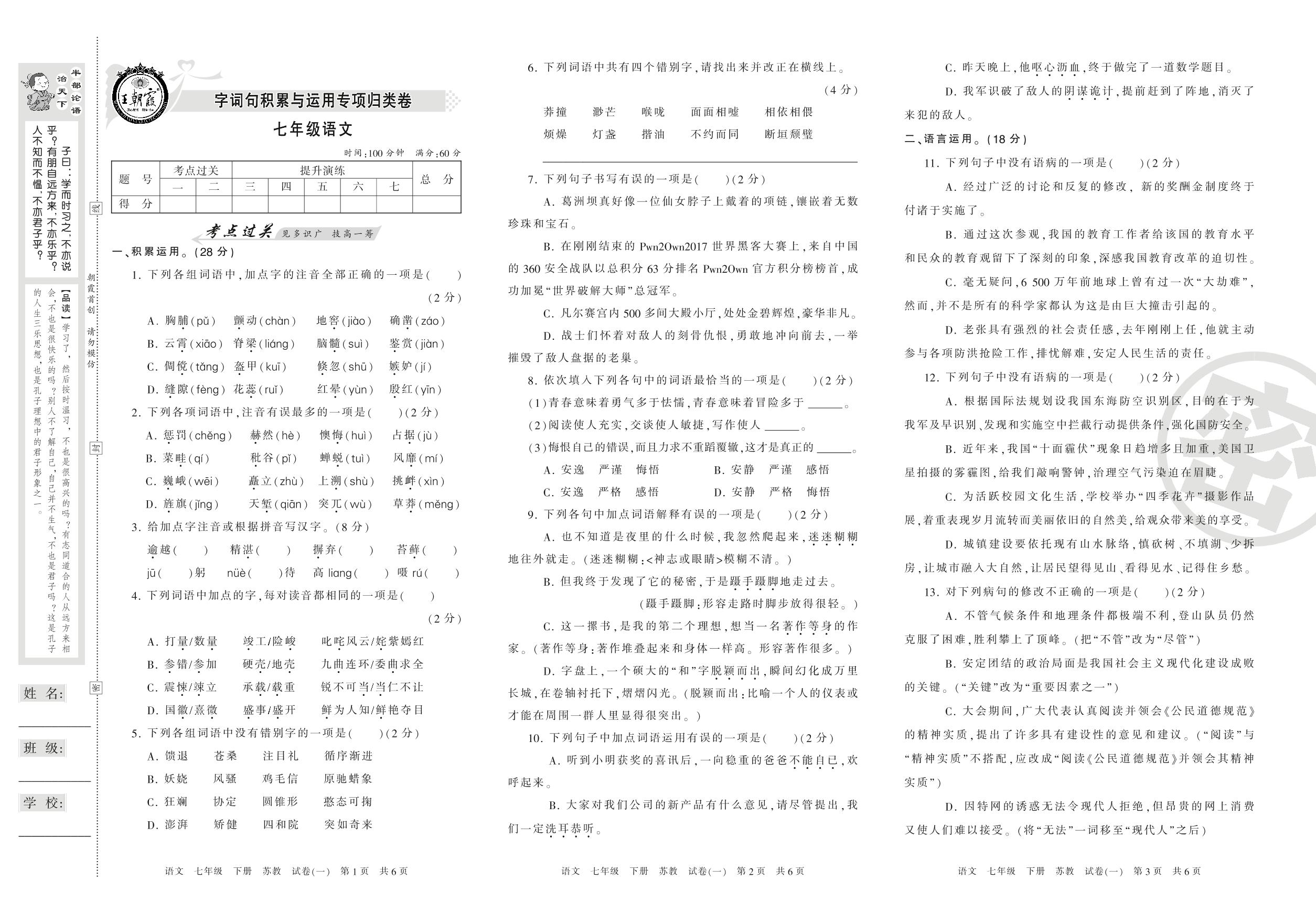 王朝霞期末专项卷七年级下册语文(苏教版)_R210802142300【1】