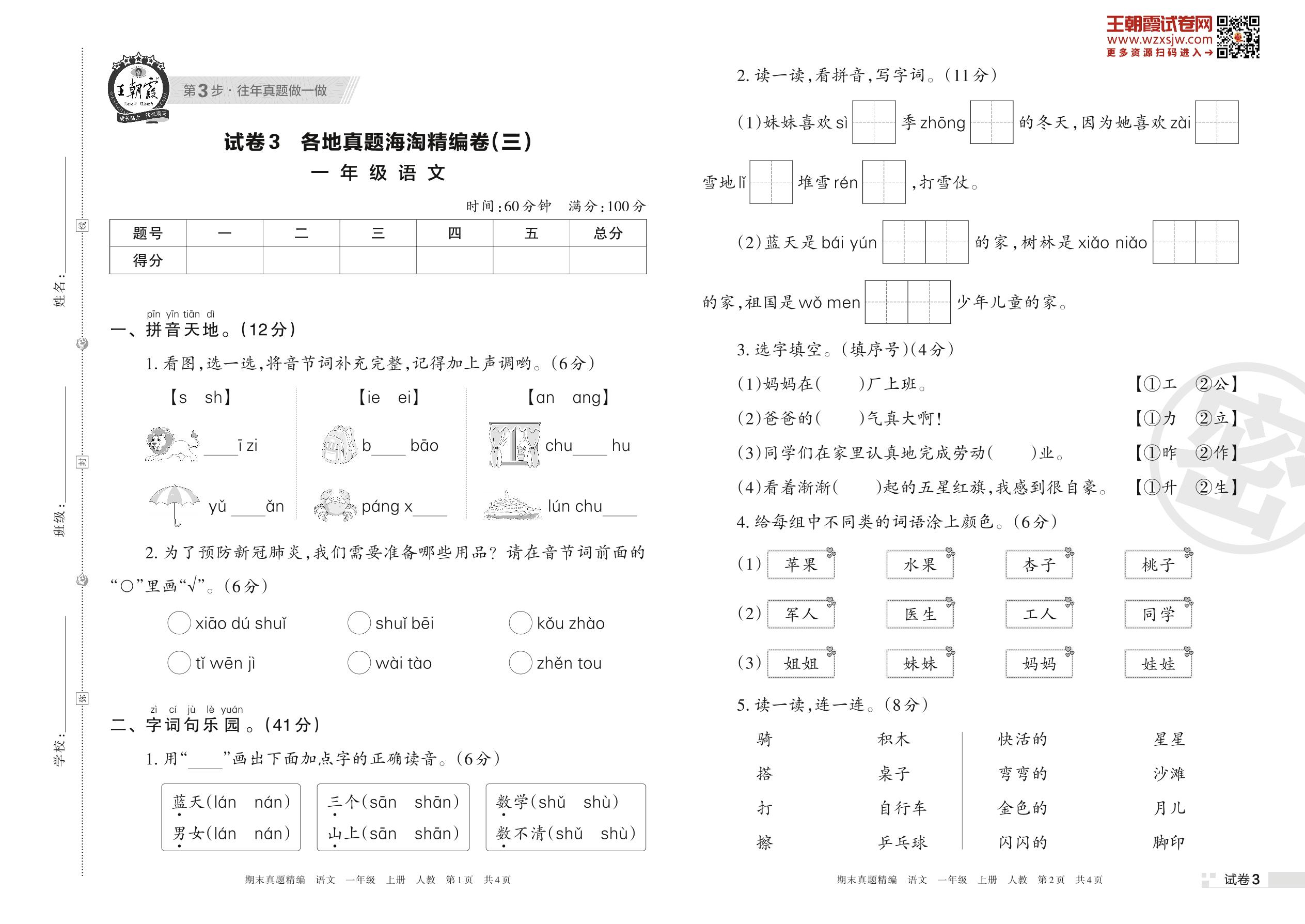 一年级语文人教版上册期末卷