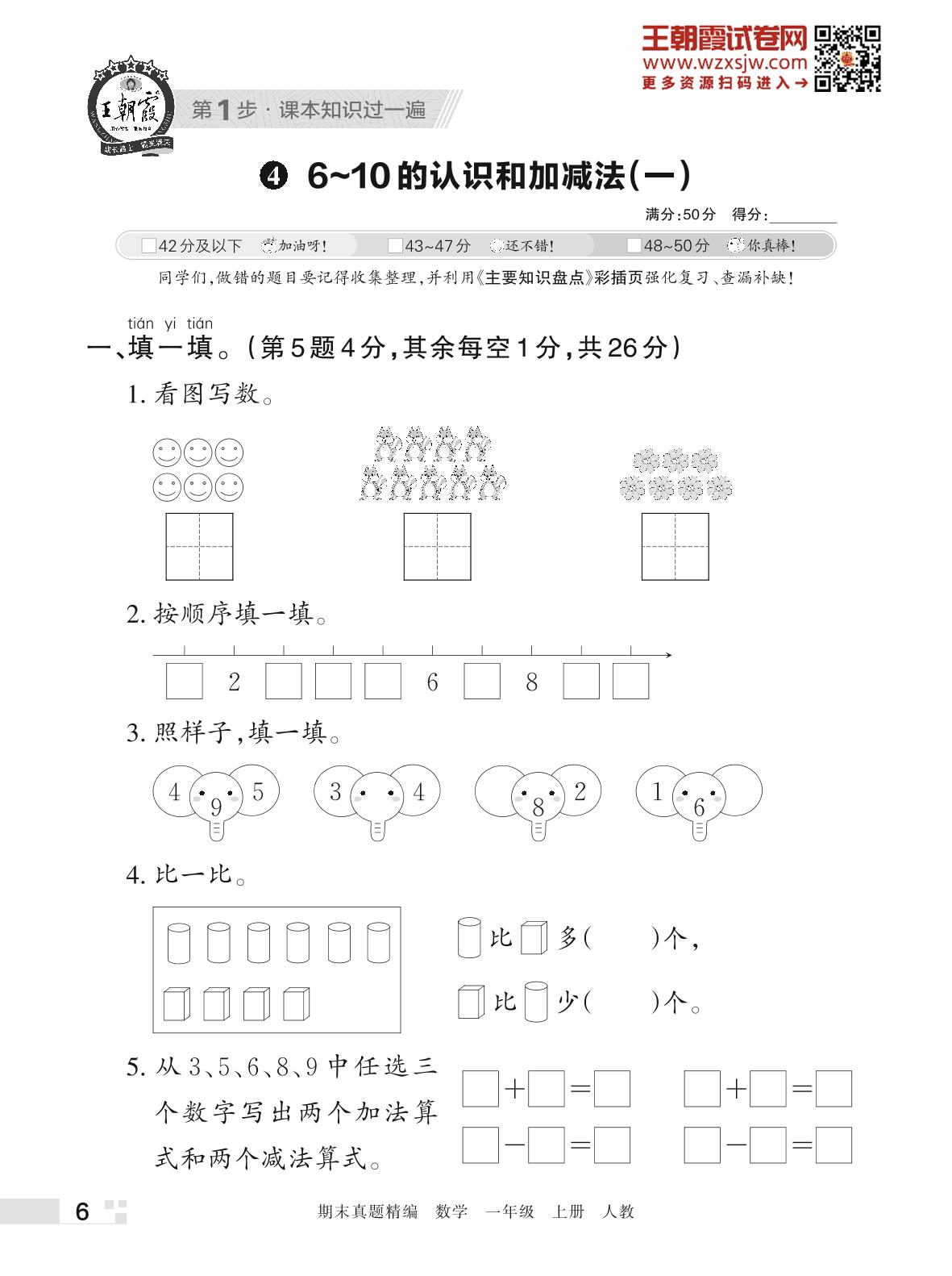 王朝霞期末过课本——4 6~10的认识和加减法(一)一年级上册数学(人教版)_R221128170326039