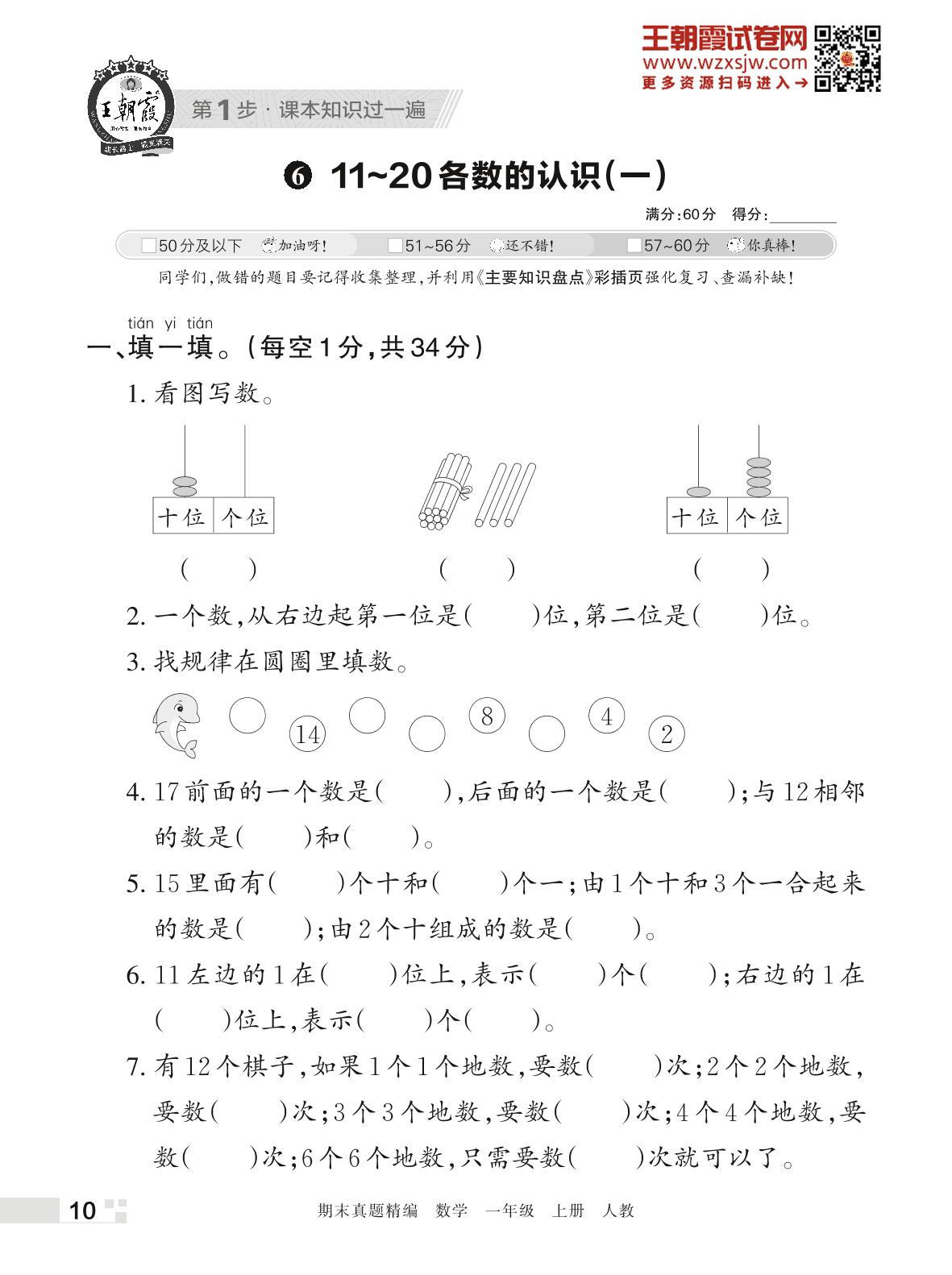 王朝霞期末过课本——6 11~20各数的认识(一)一年级上册数学(人教版)_R221128170327280
