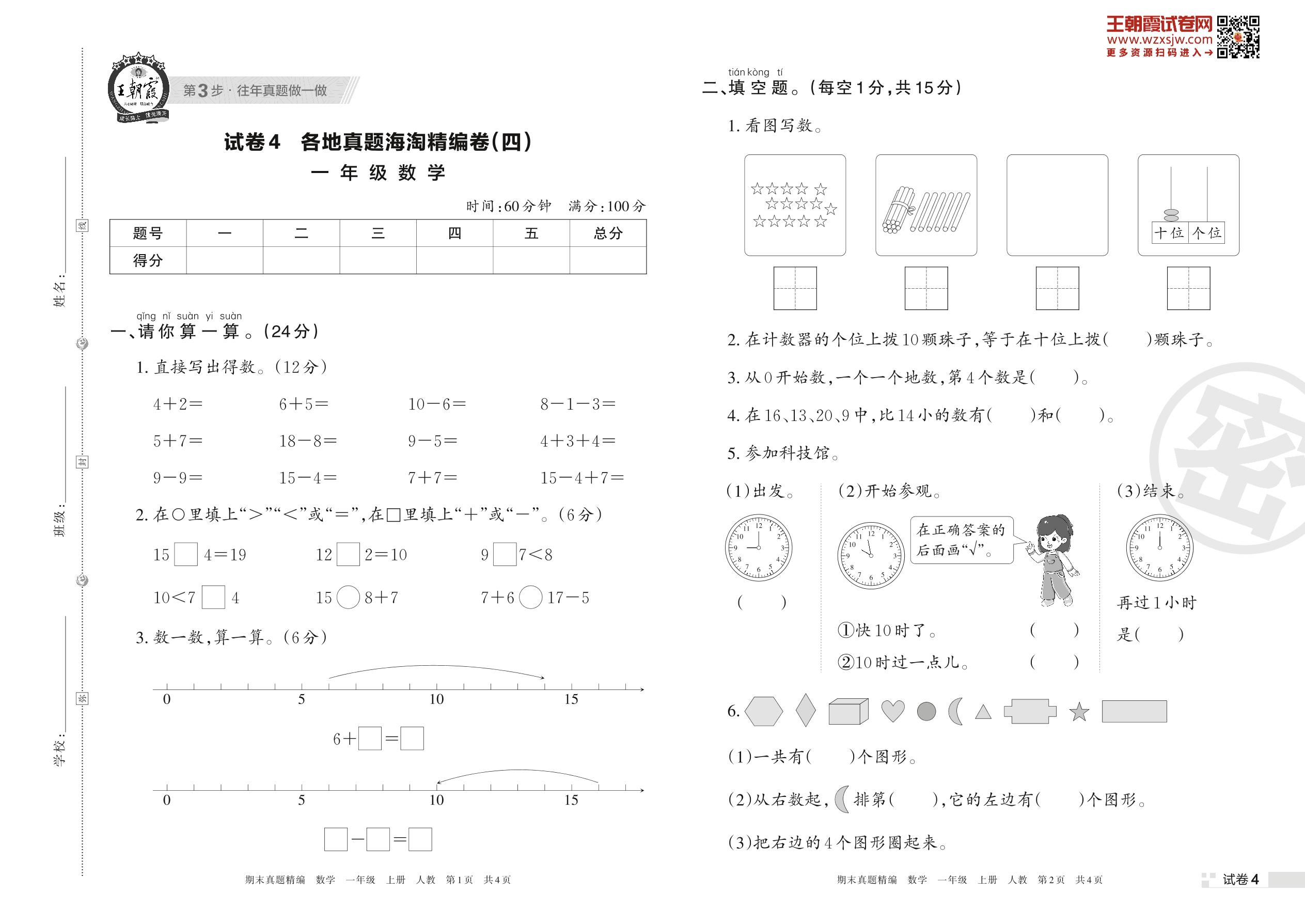 各地真题海淘精编卷(四)一年级上册数学(人教版)_R221128170329929【4】