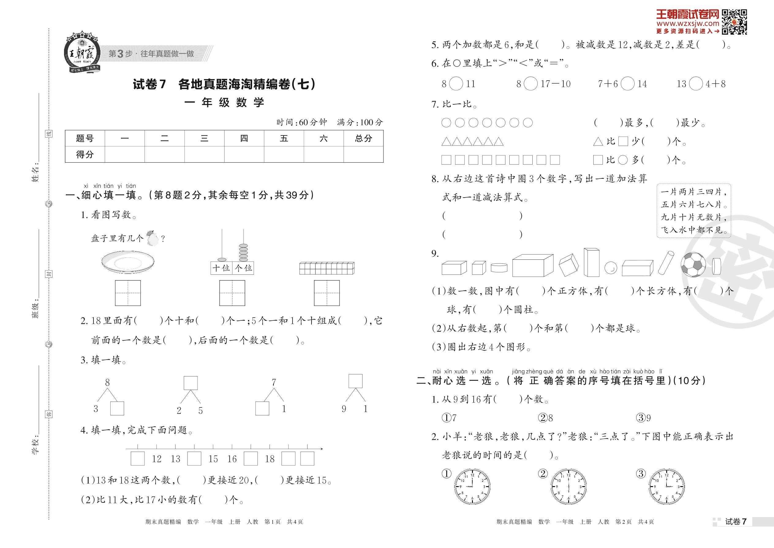 各地真题海淘精编卷(七)一年级上册数学(人教版)_R221128170329888【7】