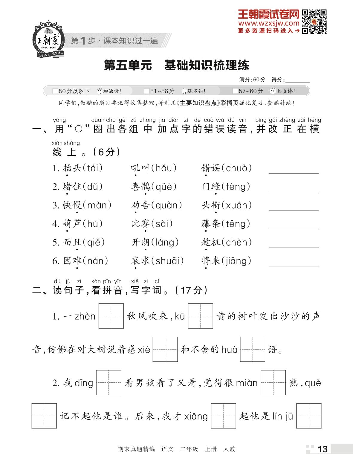 王朝霞期末过课本——第五单元 基础知识梳理练二年级上册语文(人教版)_R221128173616568