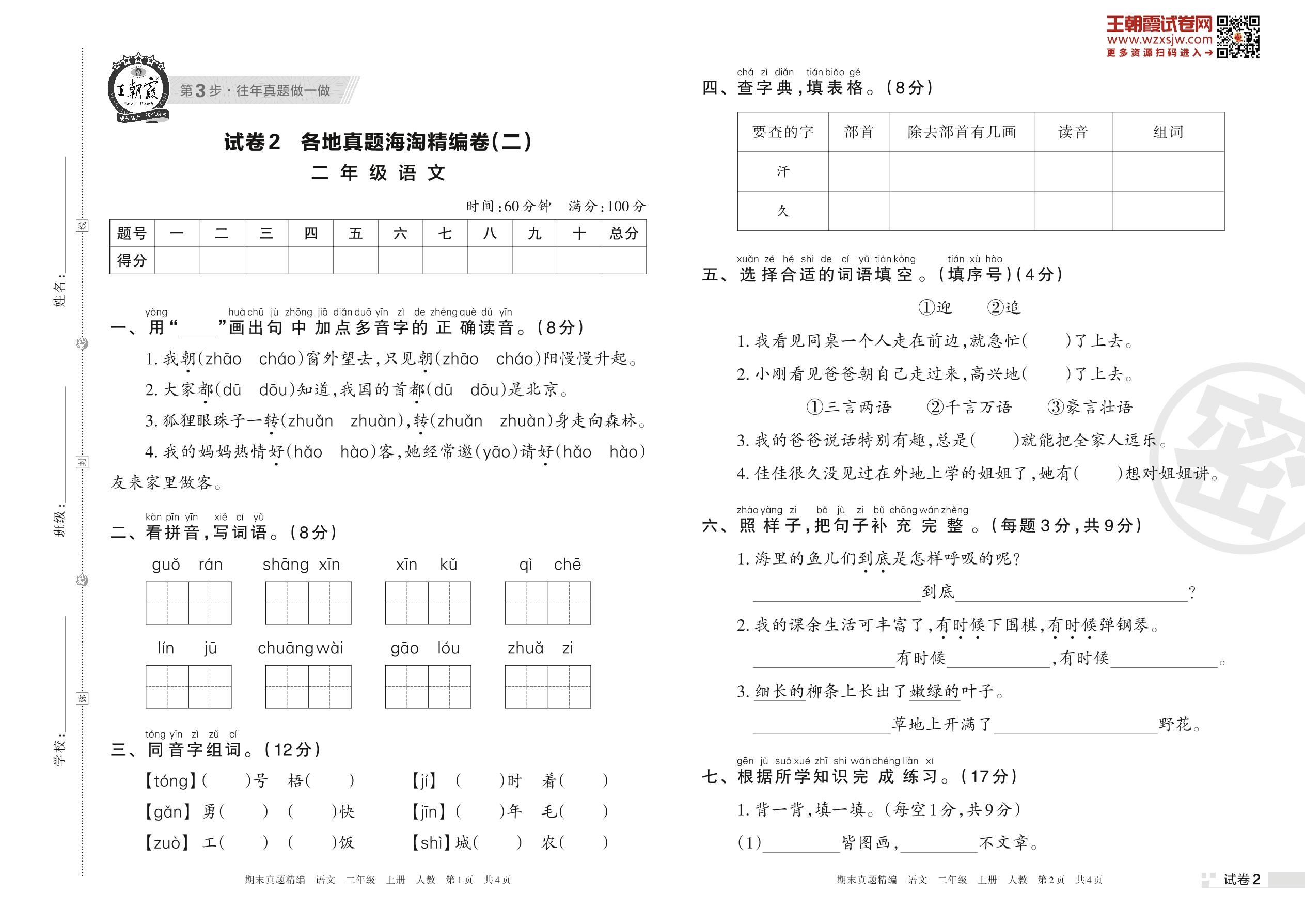 二年级语文人教版上册期末卷