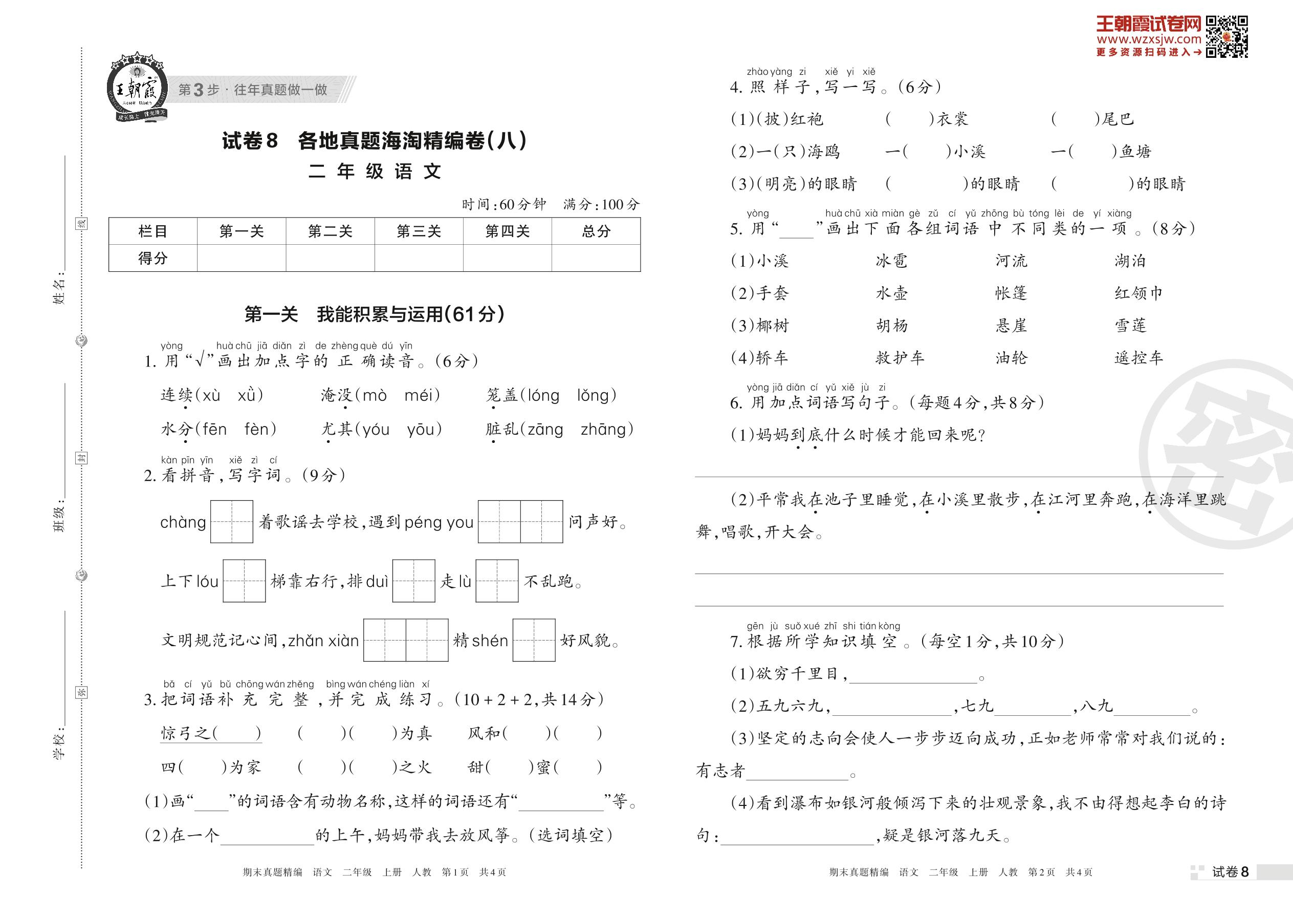 二年级语文人教版上册期末卷