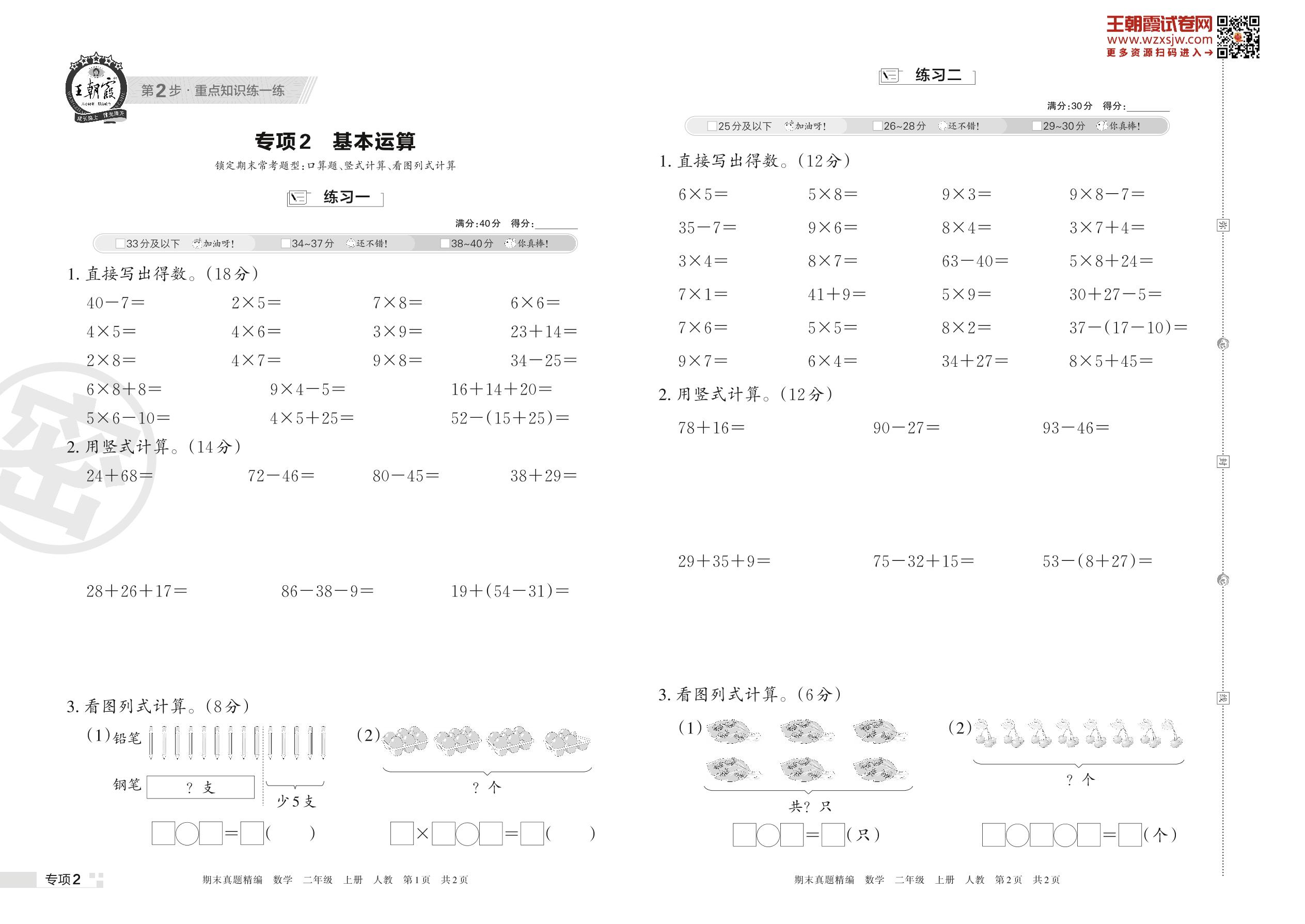 王朝霞期末专项卷——基本运算二年级上册数学(人教版)_R221128175216969【2】