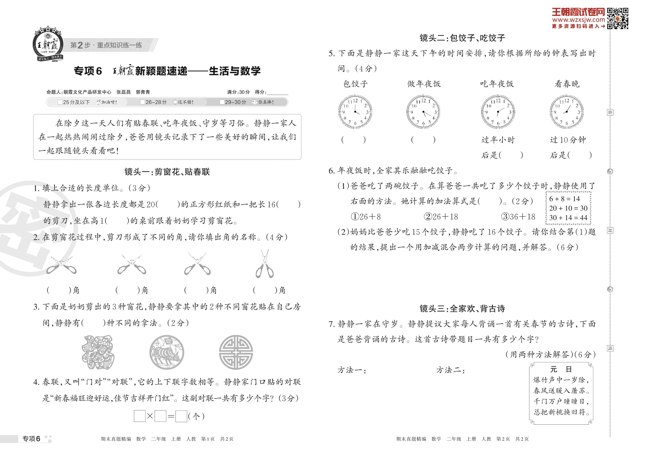 王朝霞期末专项卷——王朝霞新颖题速递:生活与数学二年级上册数学(人教版)_R221128175216162【6】
