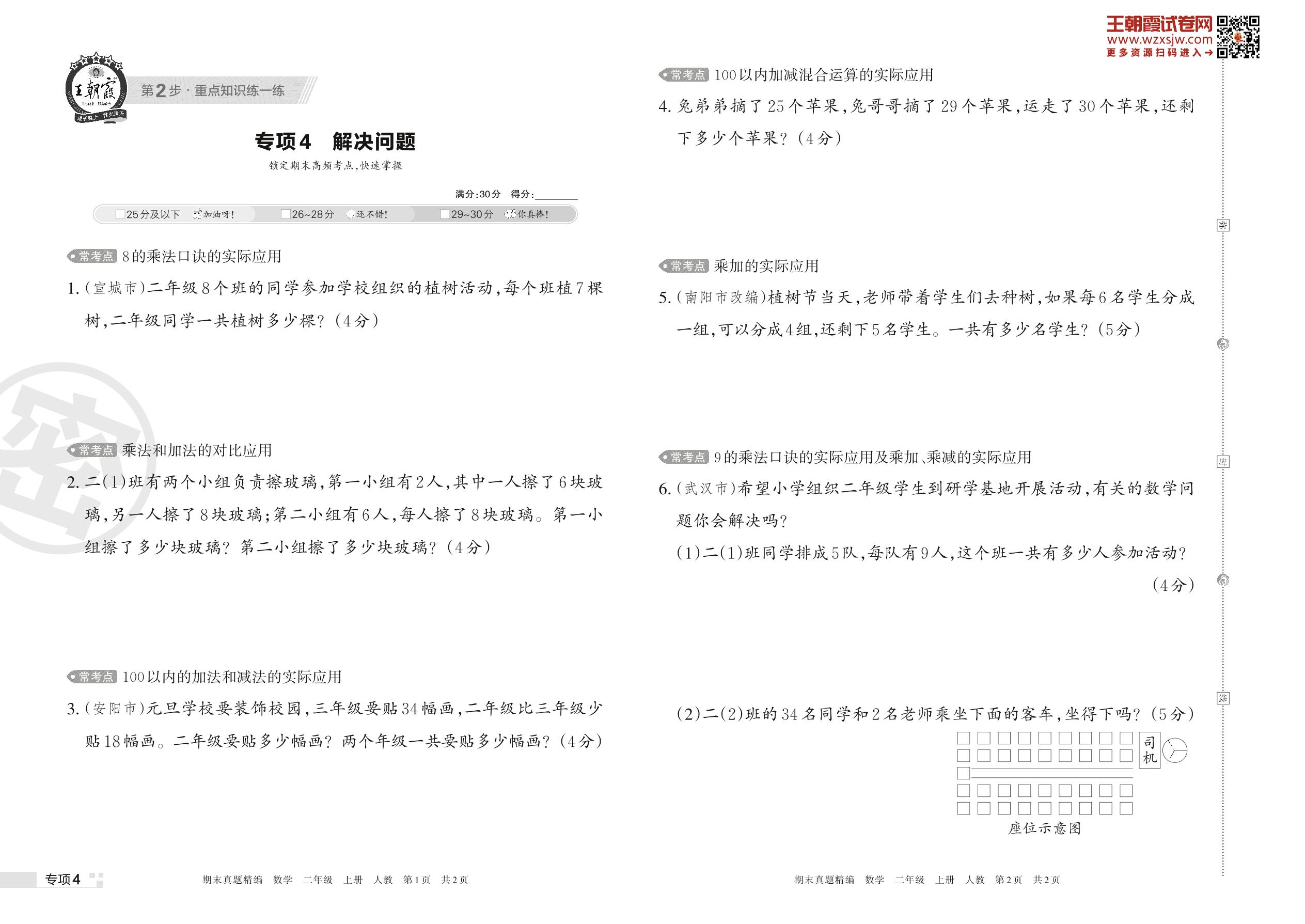 王朝霞期末专项卷——解决问题二年级上册数学(人教版)_R221128175217991【4】