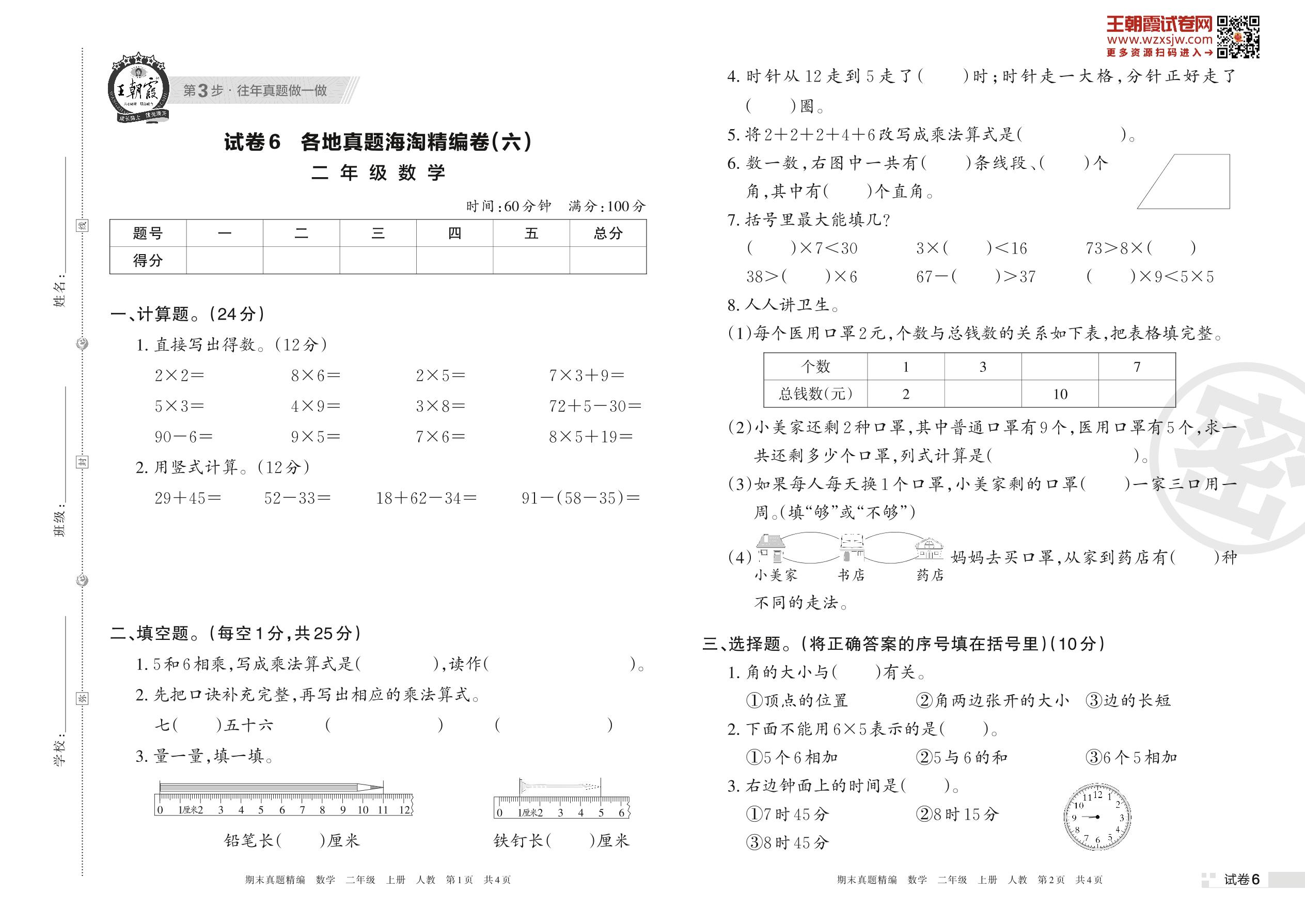 各地真题海淘精编卷(六)二年级上册数学(人教版)_R221128175217047【6】