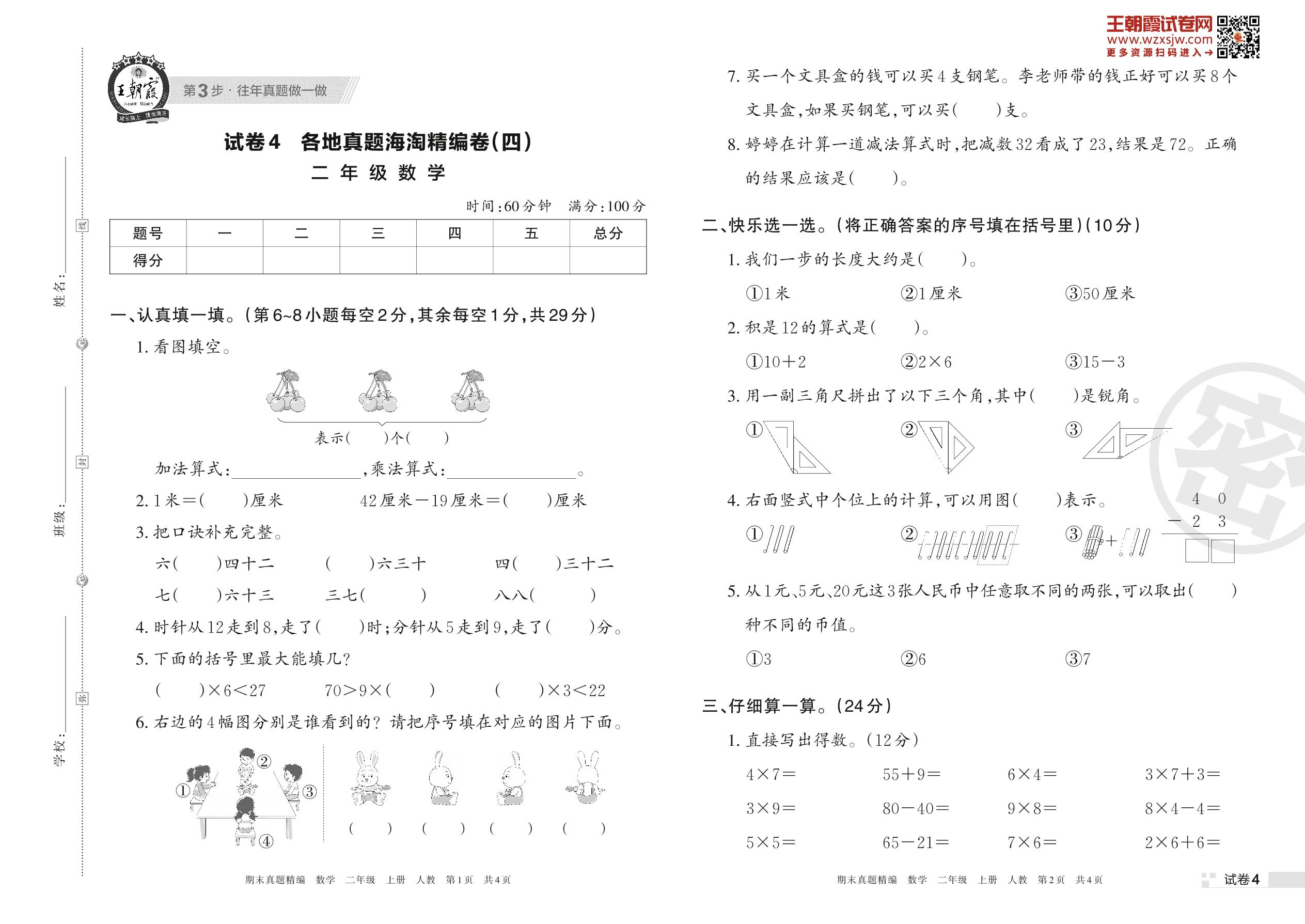 二年级数学人教版上册期末卷