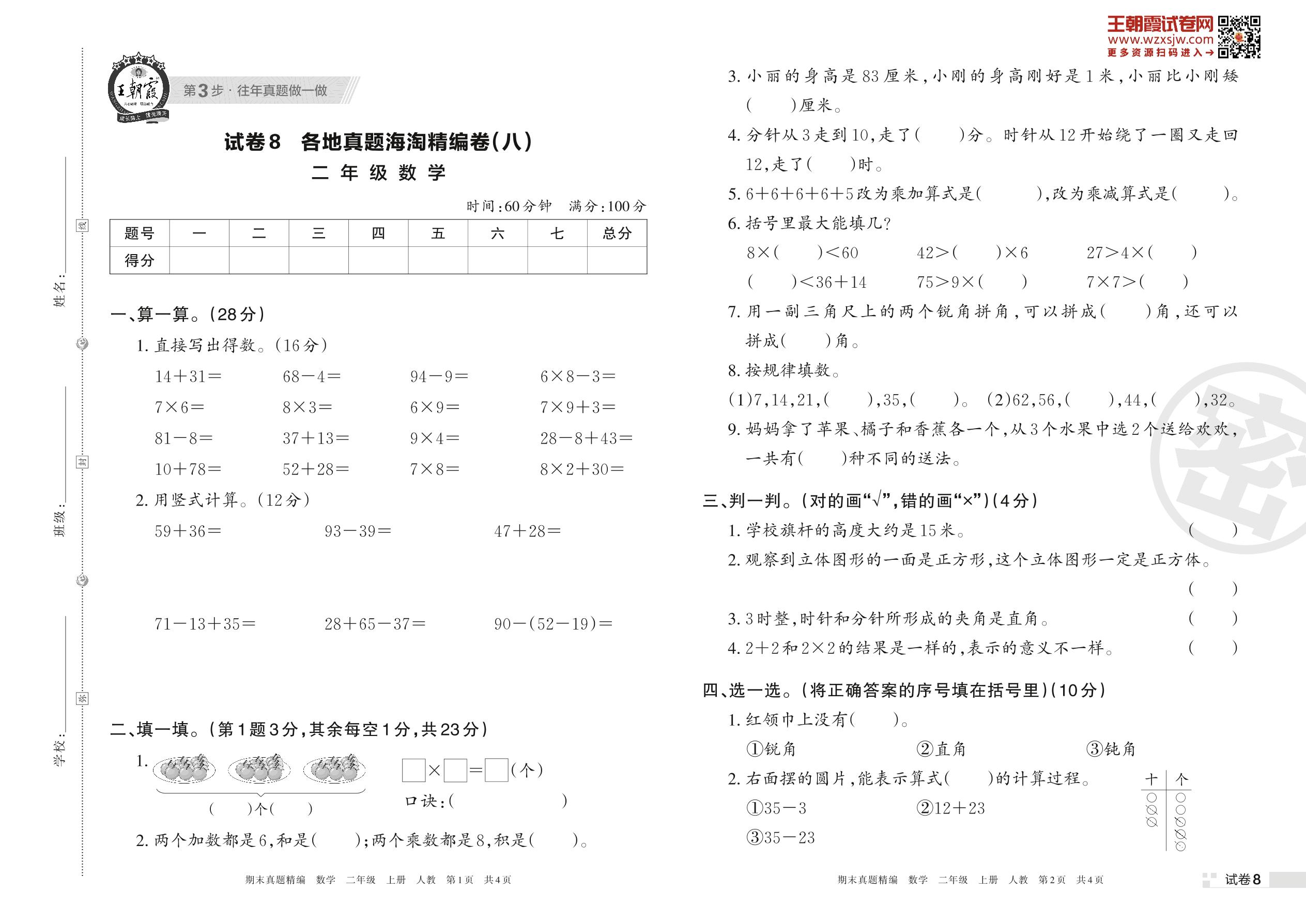 各地真题海淘精编卷(八)二年级上册数学(人教版)_R221128175217716【8】