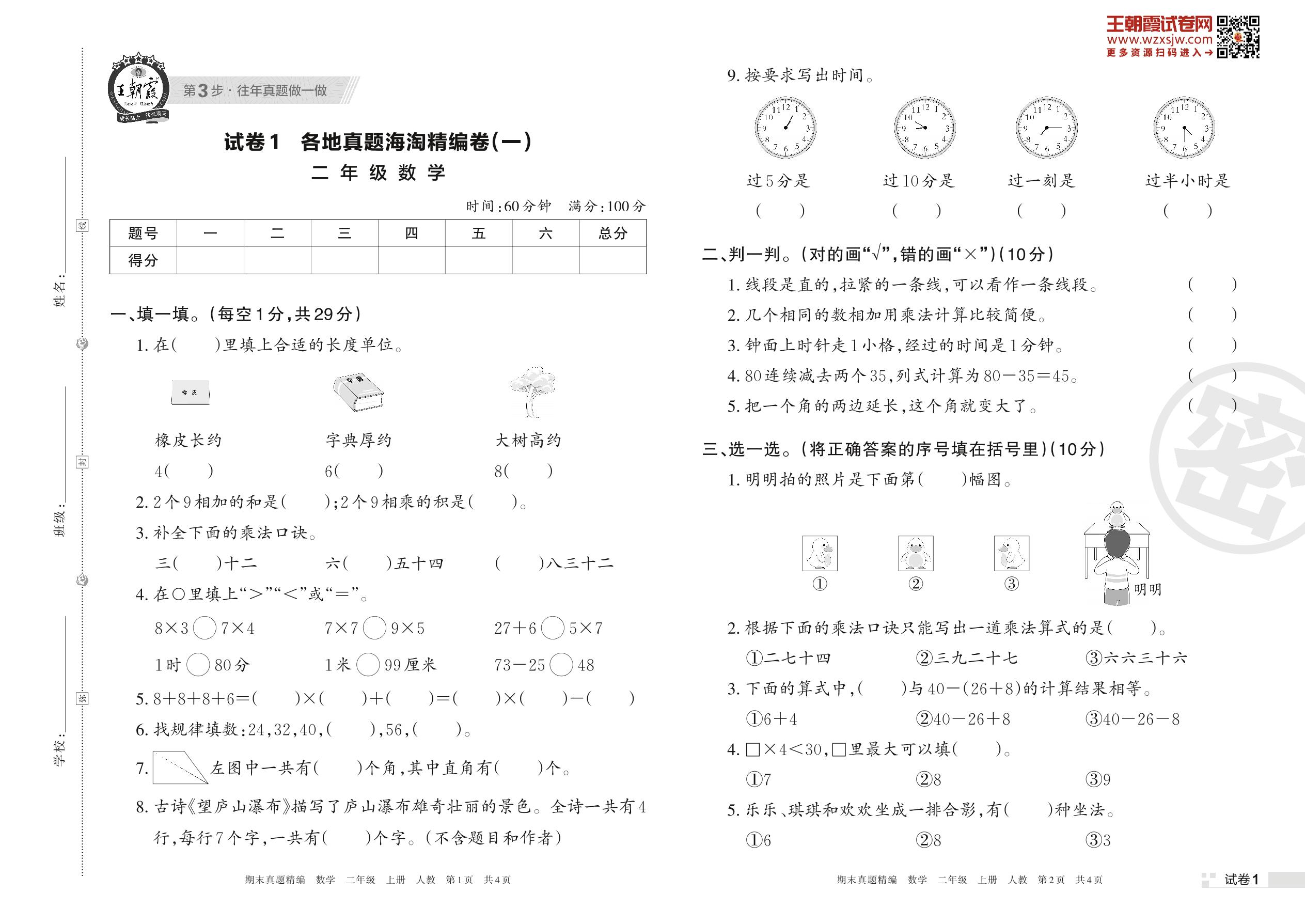 各地真题海淘精编卷(一)二年级上册数学(人教版)_R221128175218390【1】