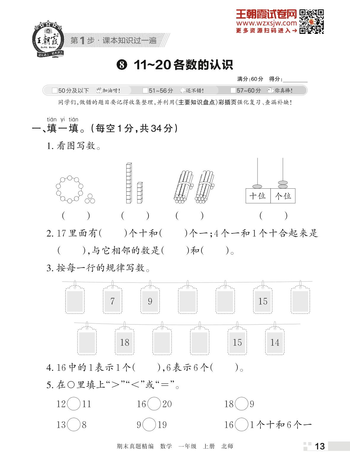 王朝霞期末过课本——8 11~20各数的认识一年级上册数学(北师版)_R221128181101084