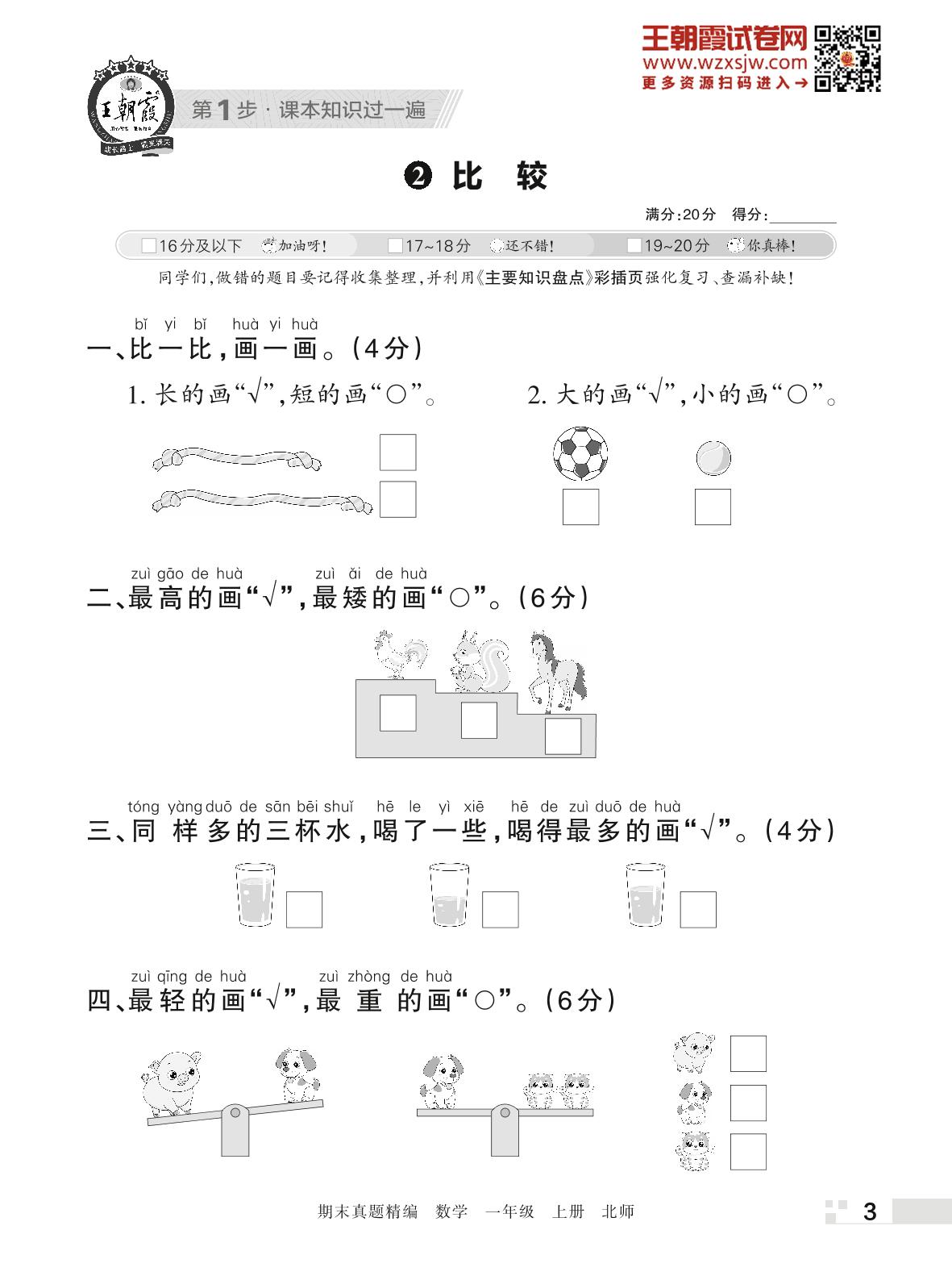 王朝霞期末过课本——2 比较一年级上册数学(北师版)_R221128181101448