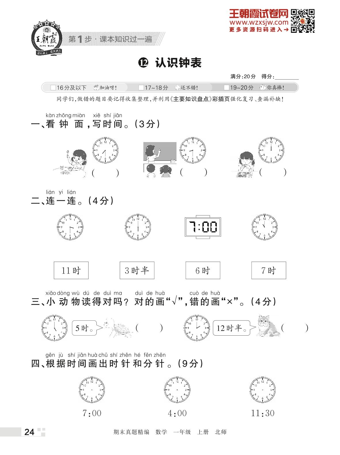王朝霞期末过课本——12 认识钟表一年级上册数学(北师版)_R221128181102918