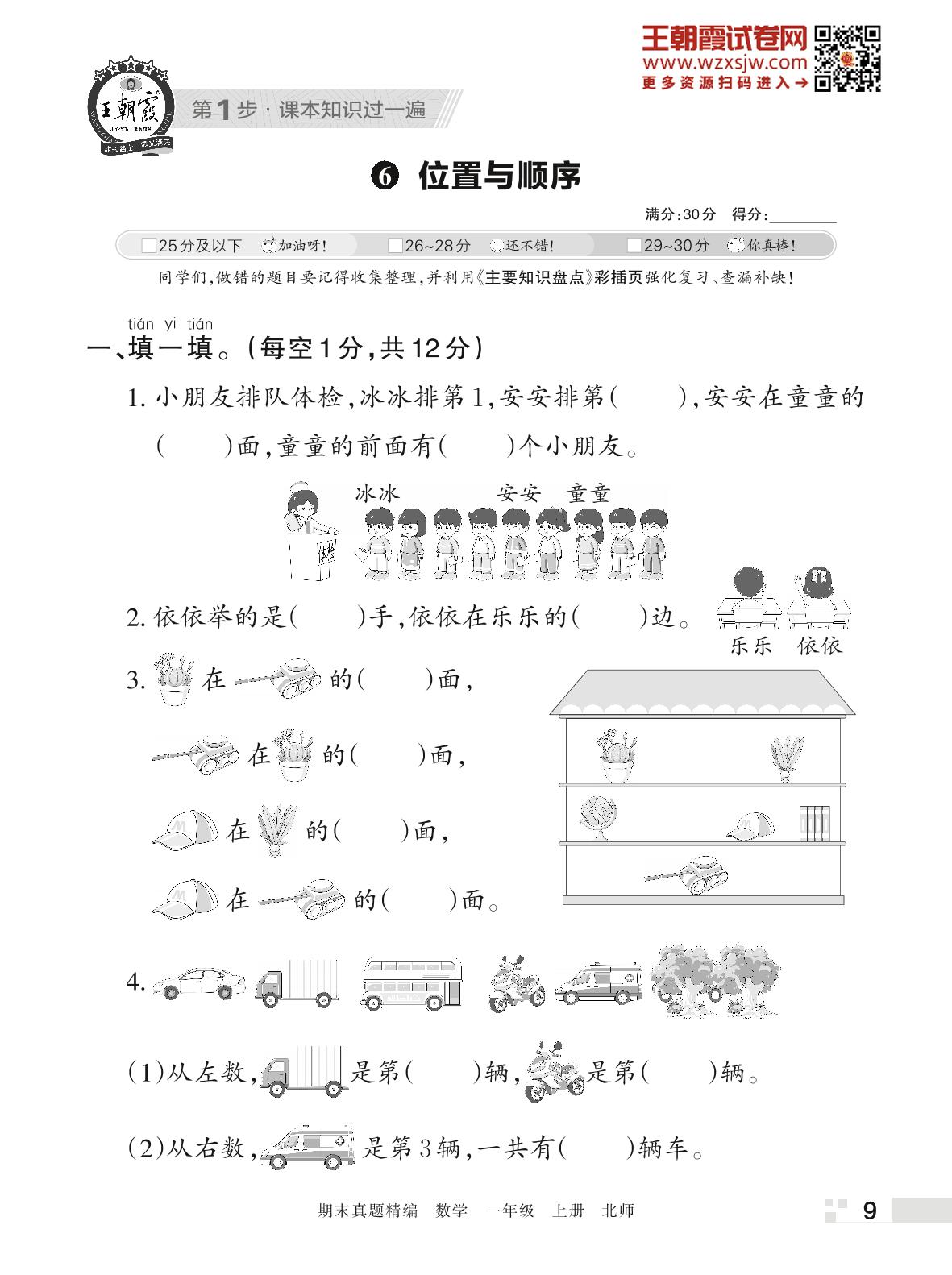 王朝霞期末过课本——6 位置与顺序一年级上册数学(北师版)_R221128181102897