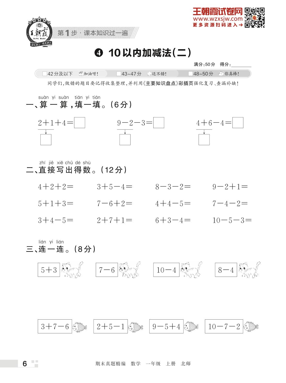 王朝霞期末过课本——4 10以内加减法(二)一年级上册数学(北师版)_R221128181102774