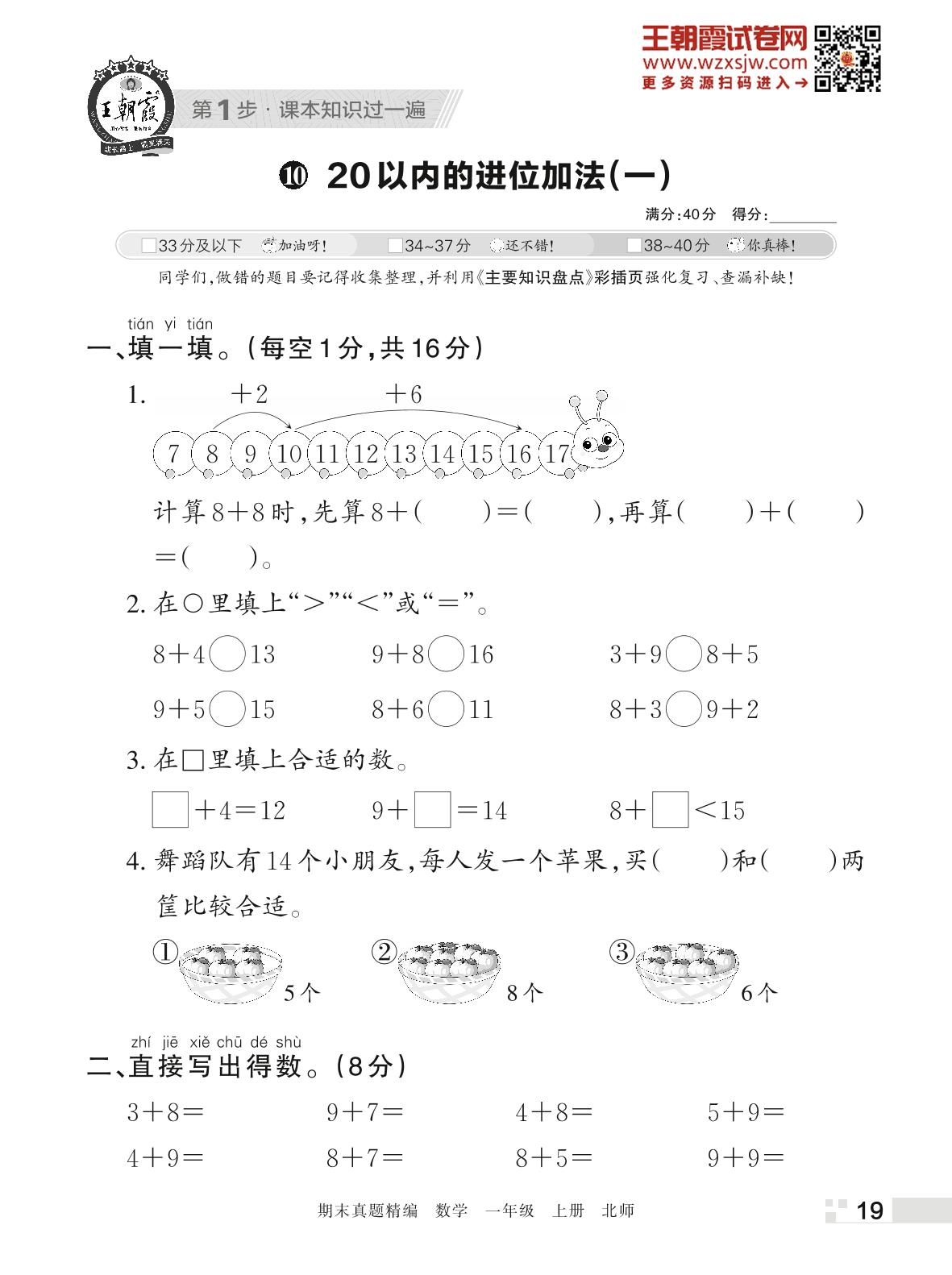 王朝霞期末过课本——10 20以内的进位加法(一)一年级上册数学(北师版)_R221128181102192