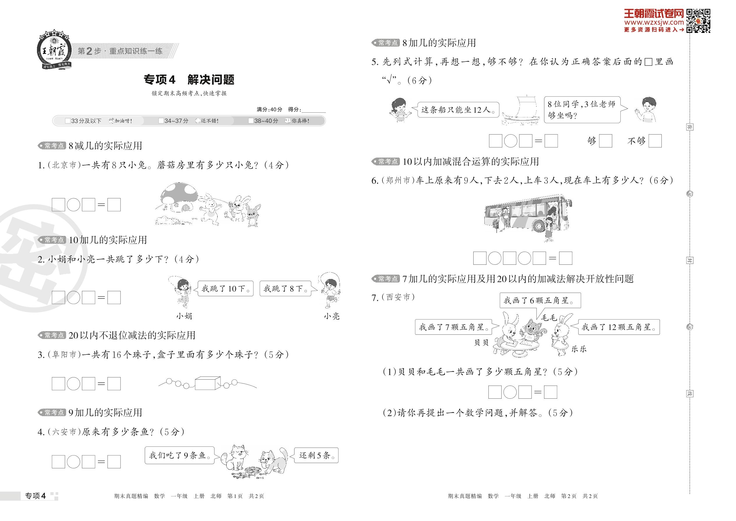 王朝霞期末专项卷——解决问题一年级上册数学(北师版)_R221128181103306【4】