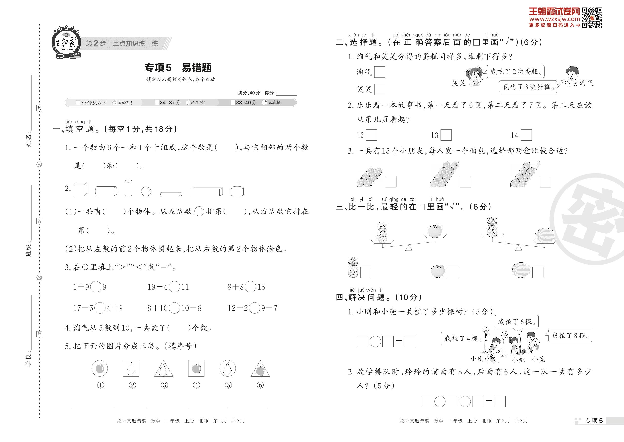 王朝霞期末专项卷——易错题一年级上册数学(北师版)_R221128181103555【5】