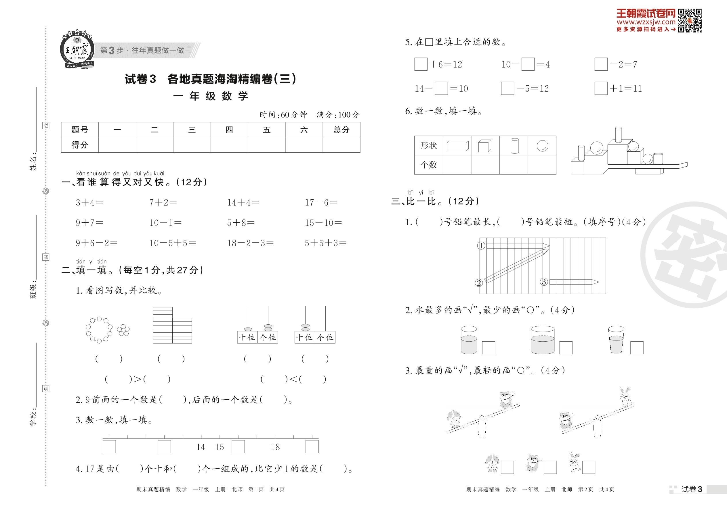 各地真题海淘精编卷(三)一年级上册数学(北师版)_R221128181104585【3】