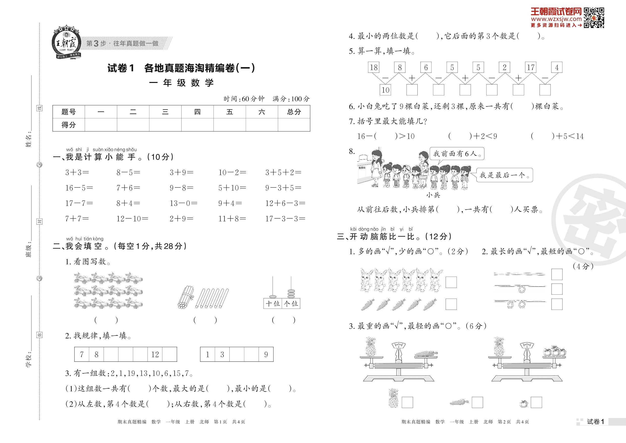 各地真题海淘精编卷(一)一年级上册数学(北师版)_R221128181104501【1】