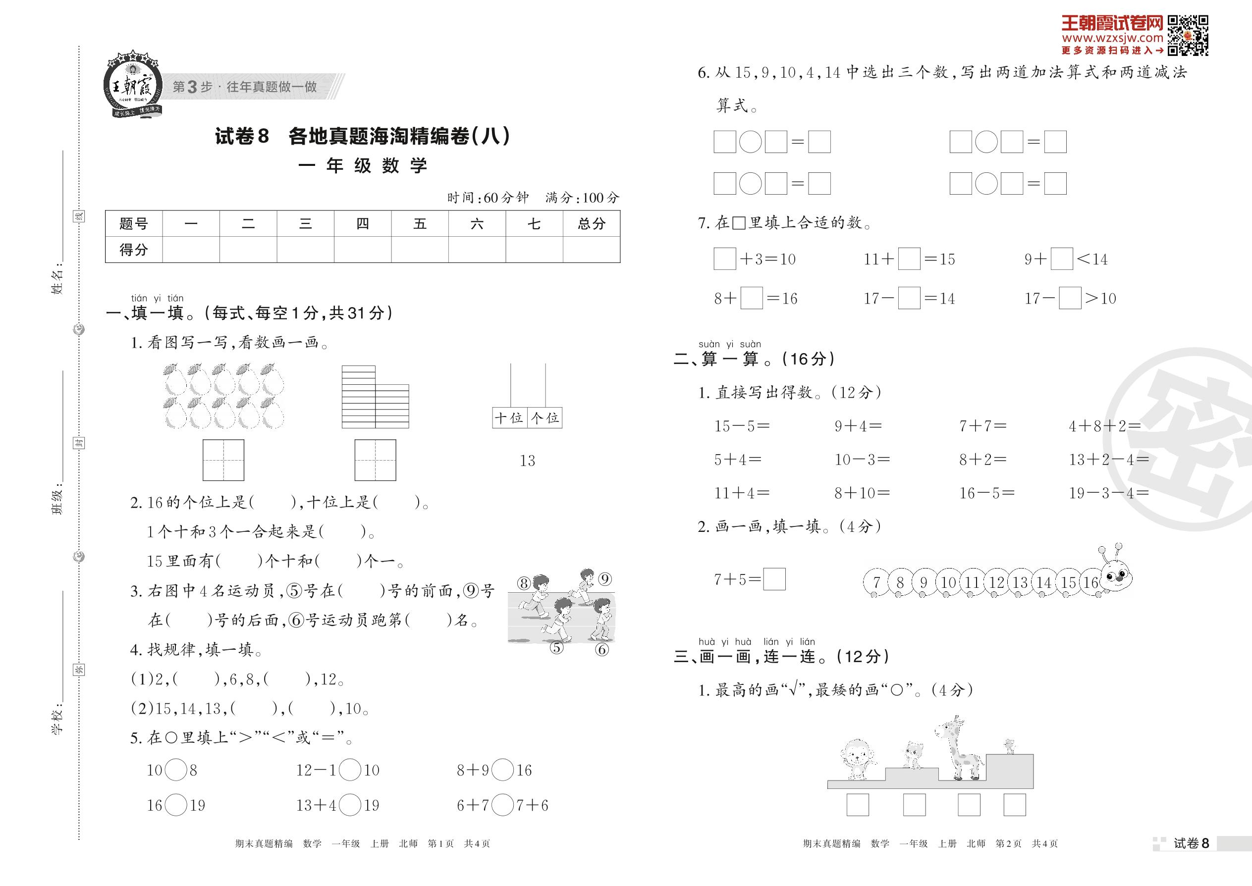 各地真题海淘精编卷(八)一年级上册数学(北师版)_R221128181104399【8】