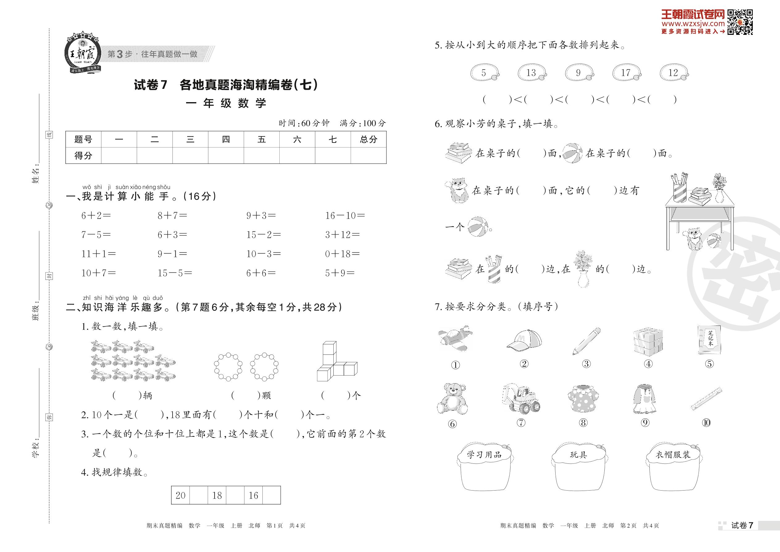 各地真题海淘精编卷(七)一年级上册数学(北师版)_R221128181104592【7】
