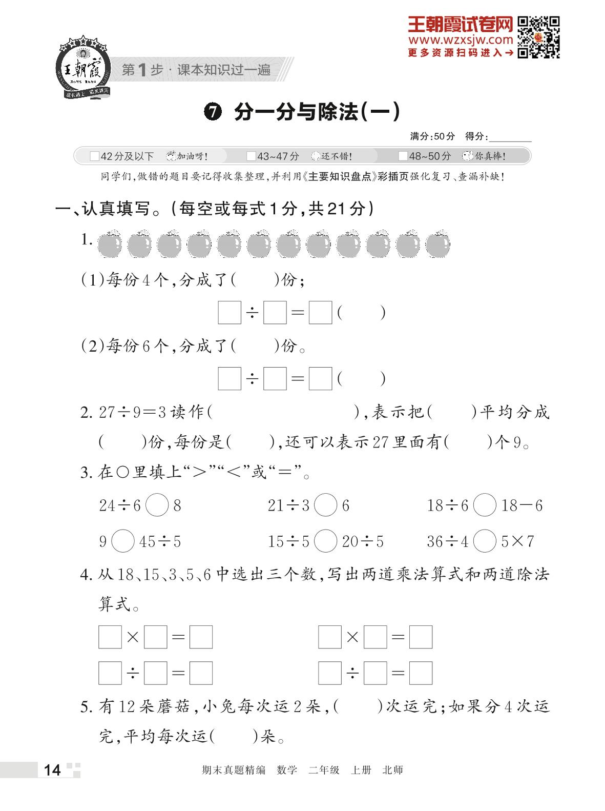 王朝霞期末过课本——7 分一分与除法(一)二年级上册数学(北师版)_R221128183437908