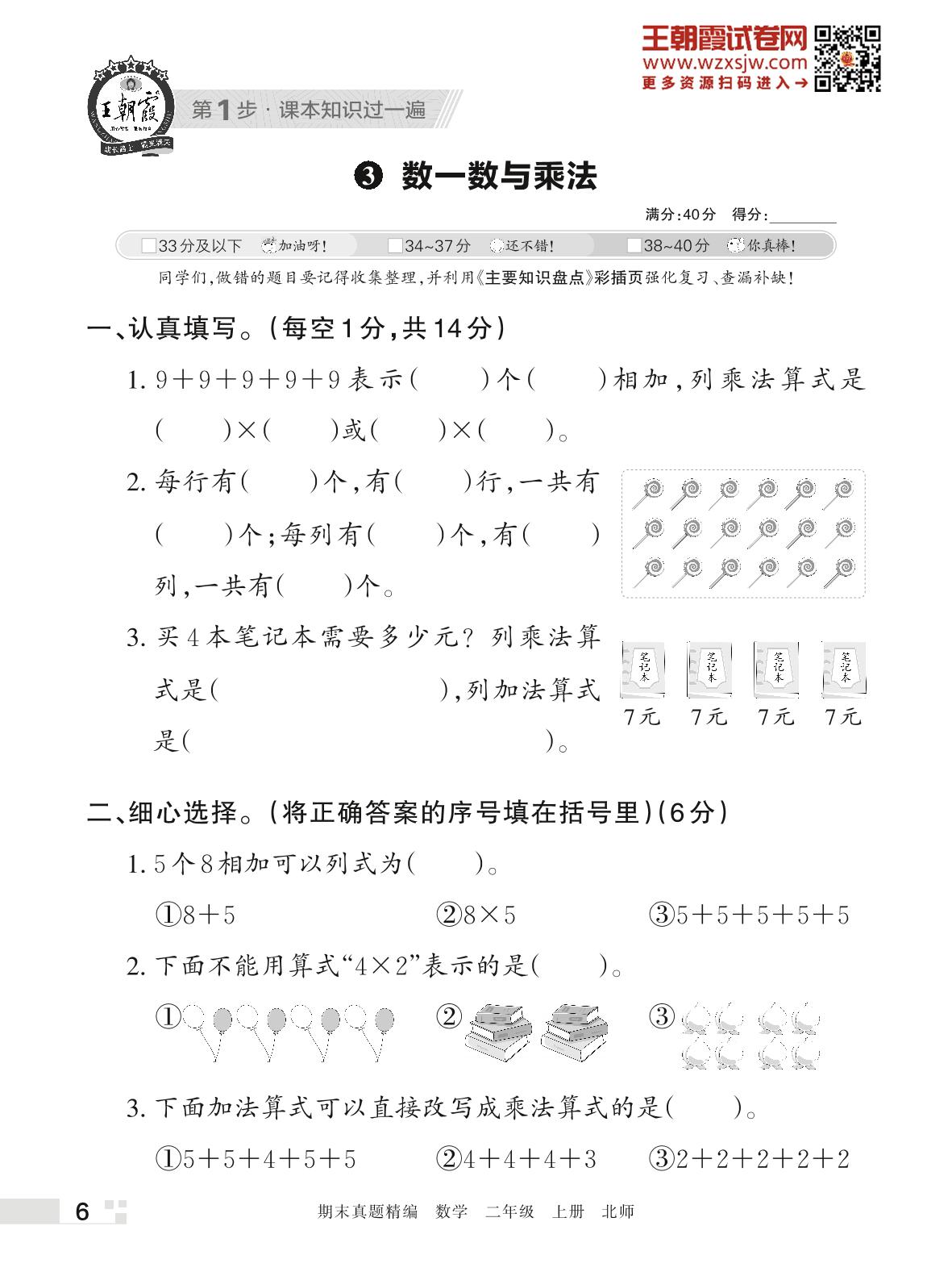 王朝霞期末过课本——3 数一数与乘法二年级上册数学(北师版)_R221128183438793