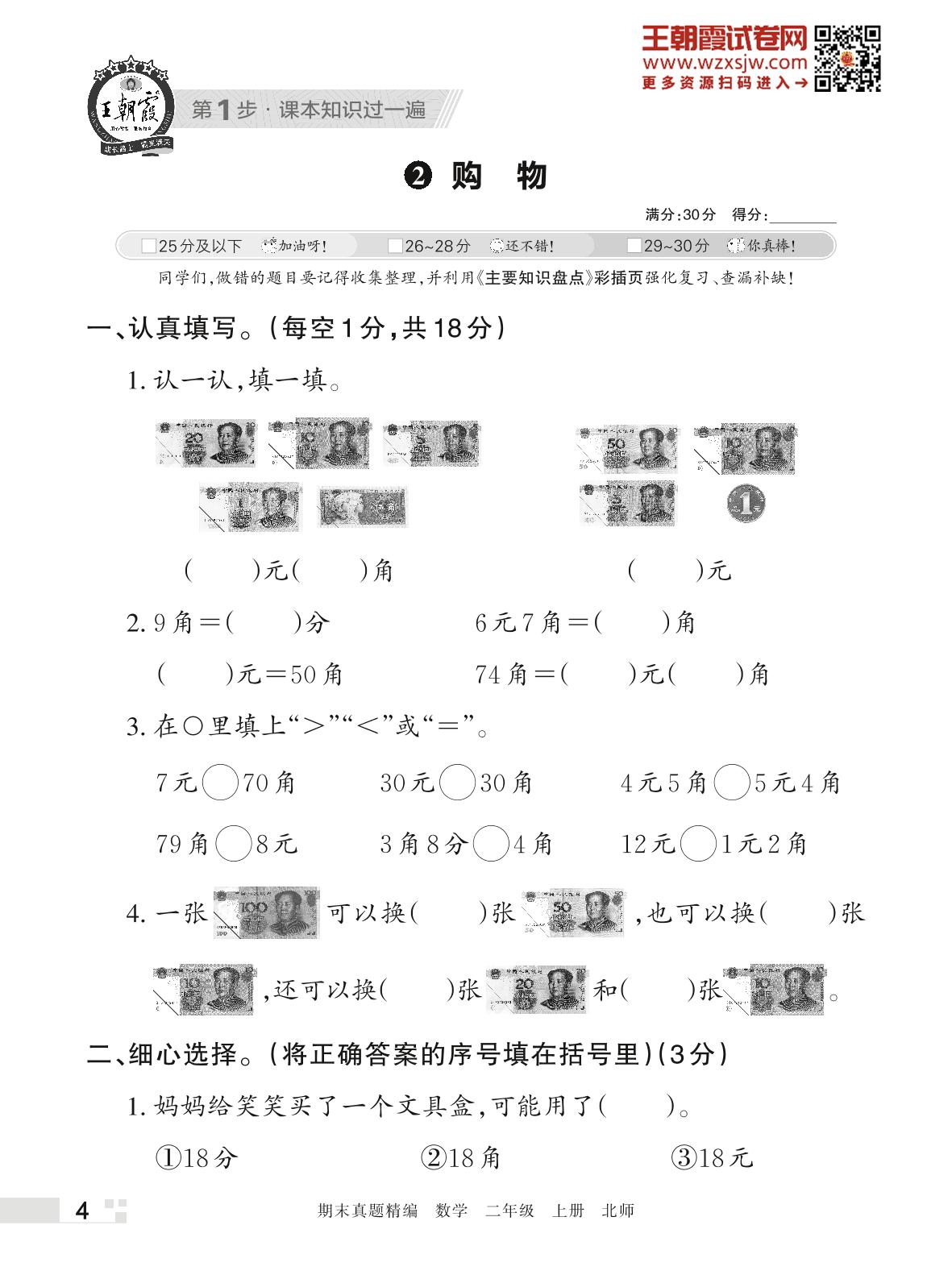 王朝霞期末过课本——2 购物二年级上册数学(北师版)_R221128183438354