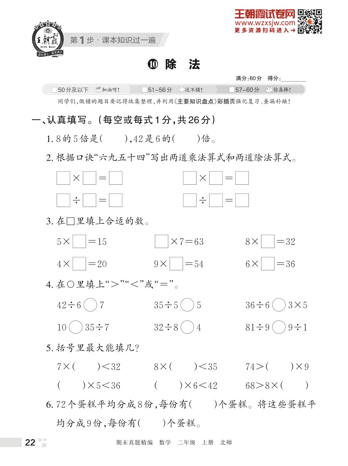 王朝霞期末过课本——10 除法二年级上册数学(北师版)_R221128183438929
