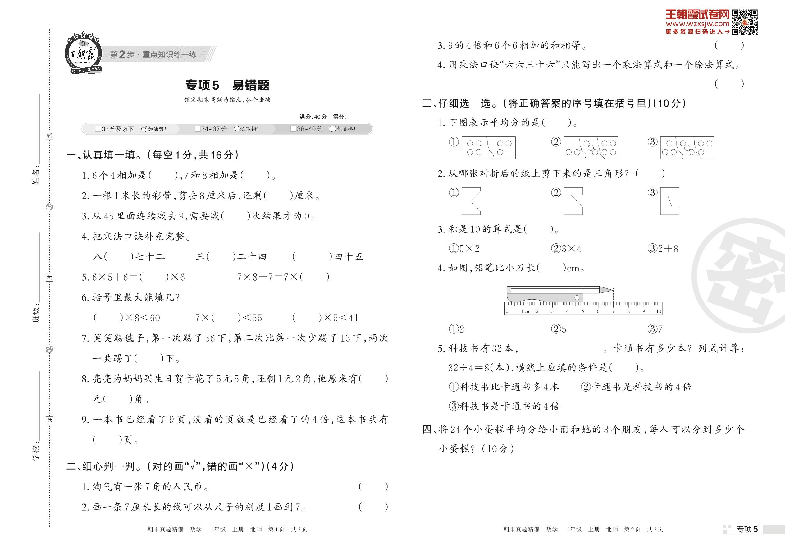 王朝霞期末专项卷——易错题二年级上册数学(北师版)_R221128183438064【5】