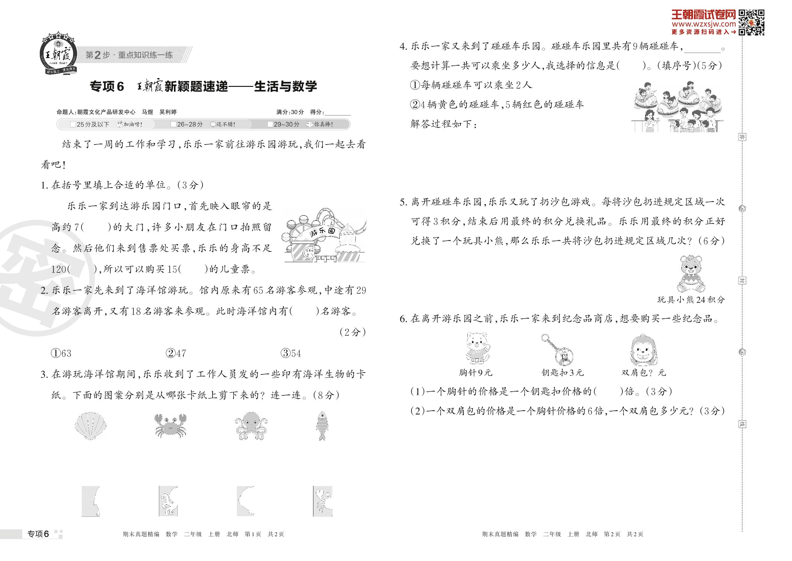 王朝霞期末专项卷——王朝霞新颖题速递:生活与数学二年级上册数学(北师版)_R221128183438986【6】