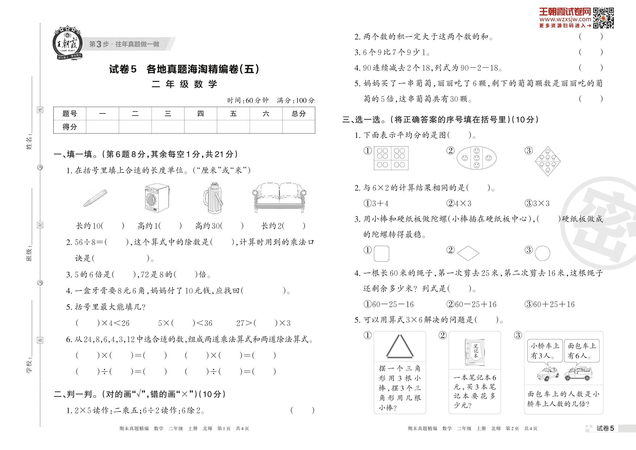 各地真题海淘精编卷(五)二年级上册数学(北师版)_R221128183439763【5】