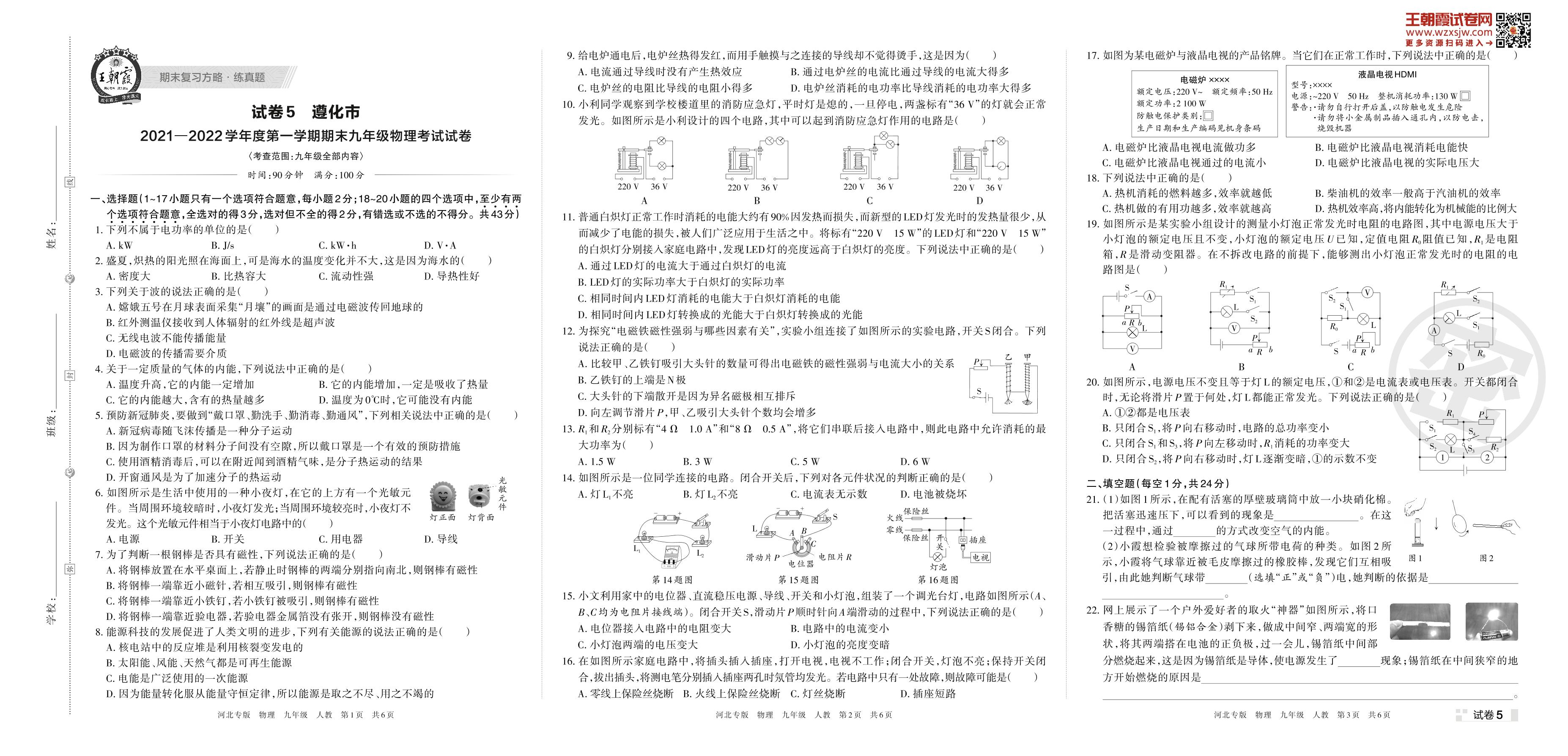 遵化市2021—2022学年度第一学期期末九年级物理考试试卷(人教版)【5】