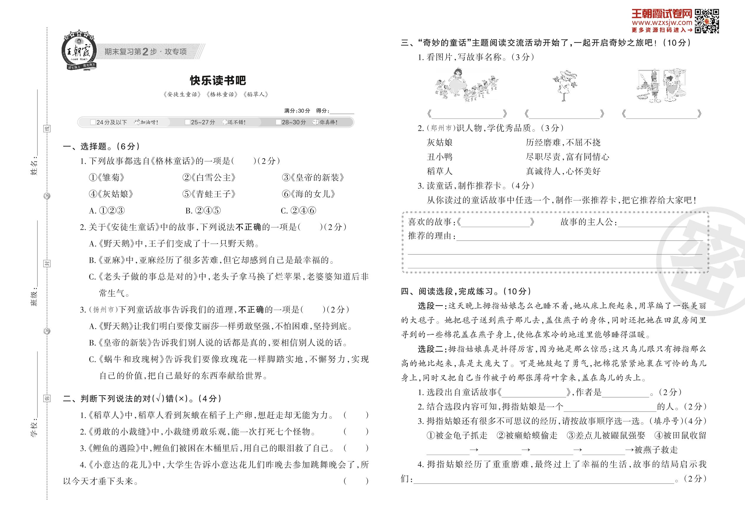【易考突破】人教版·三年级上册·语文快乐读书吧专项训练