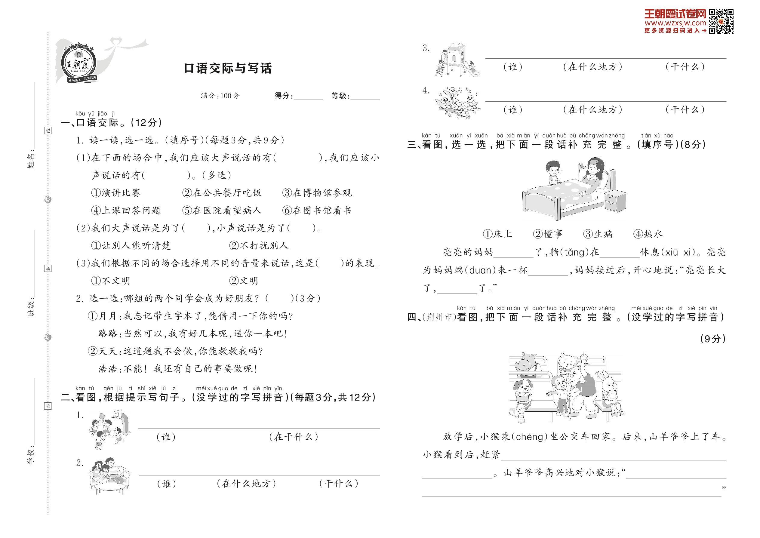【易考突破】人教版·一年级上册·语文口语交际与写话专项训练