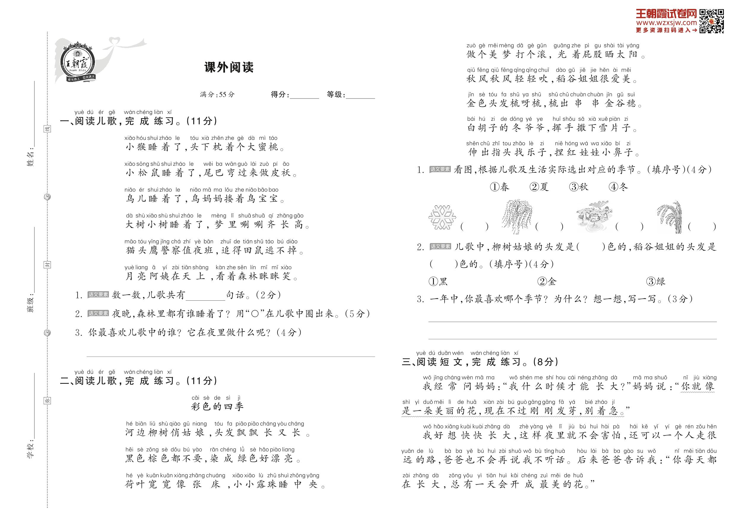 【易考突破】人教版·一年级·语文阅读理解(三)专项训练